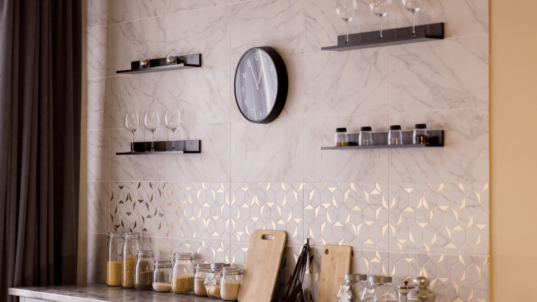 Contoh lainnya adalah backsplash dengan ubin kecil yang memiliki pola subtil atau tekstur. Mereka menambahkan dimensi visual tanpa membuat ruang terlihat ramai.