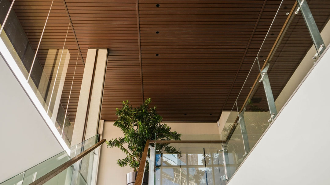 Mengandalkan tampilan kayu asli dengan performa plastik premium, Louver Peanut cocok untuk Anda yang menginginkan panel dengan vibes modern. Varian ini cocok untuk diaplikasikan menjadi plafon hingga partisi interior.