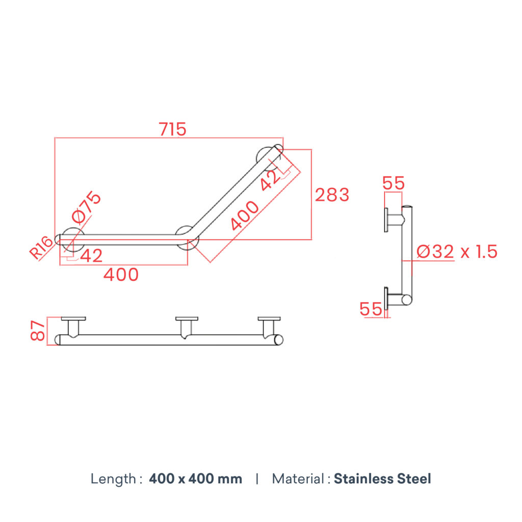GOMAN 45 DEGREE SAFETY HANDLE RAFFAELLO INOX RAF-XMA4/94