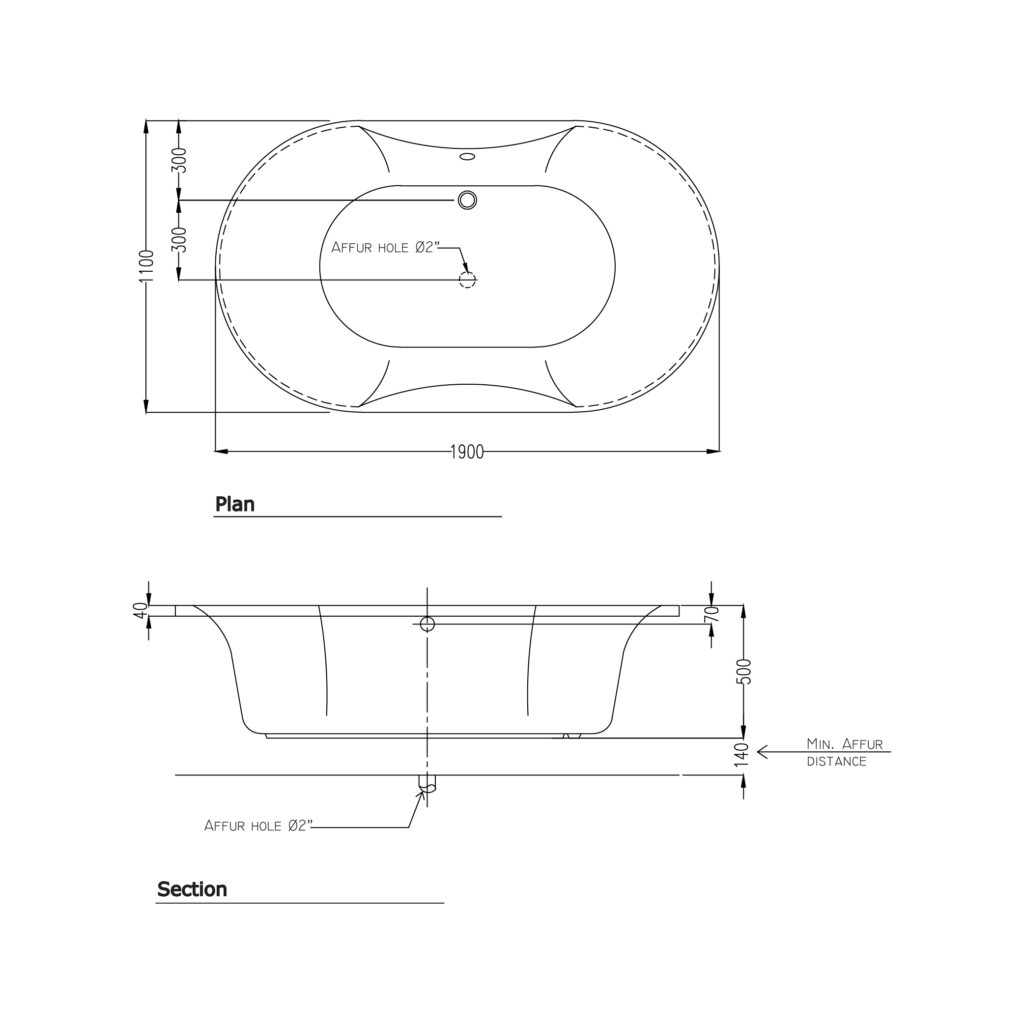 KOLPA BUILT-IN TUB 190X120CM + BATH TRAP INCLUDE OVERFLOW 1M