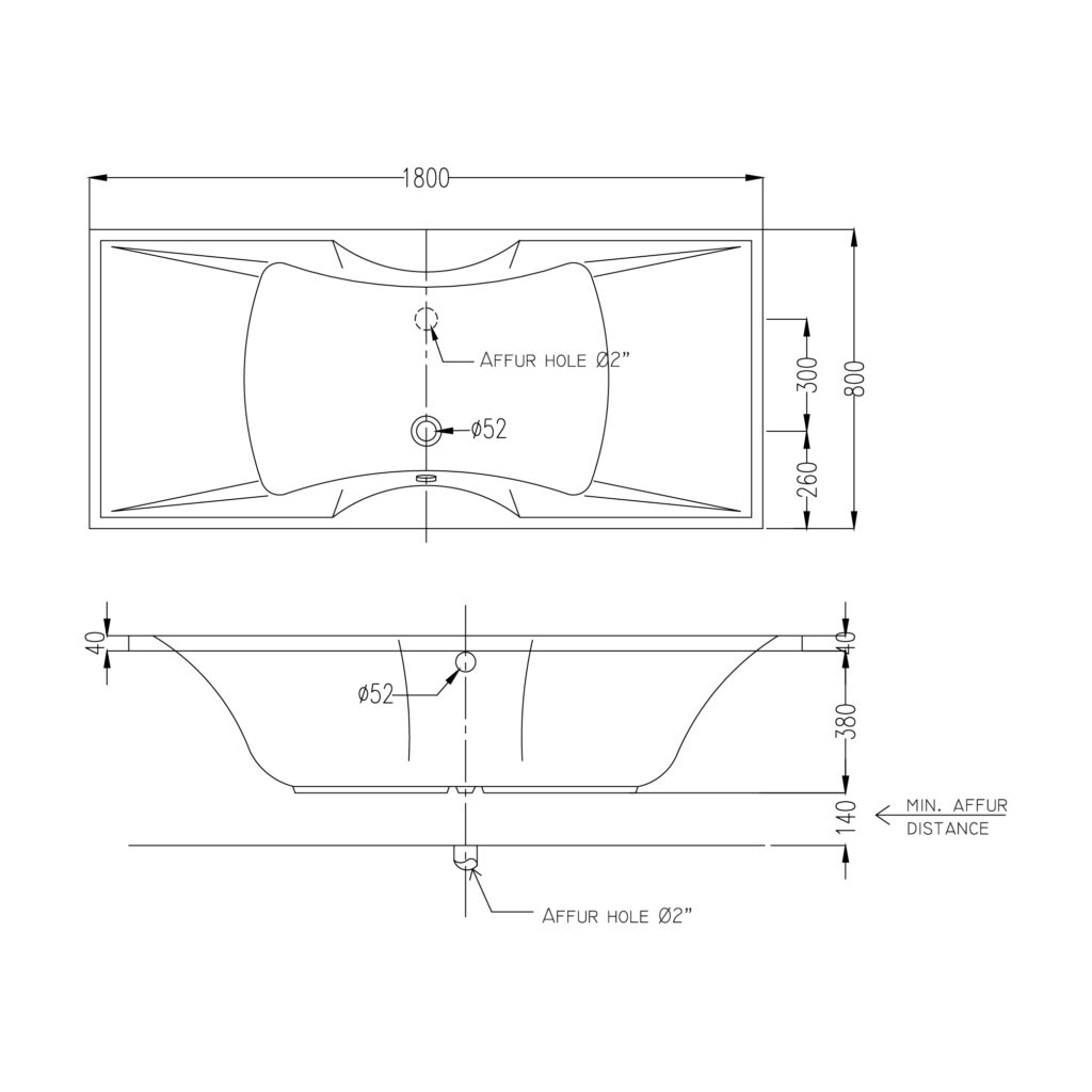 KOLPA BUILT-IN TUB 180X80CM + BATH TRAP INCLUDE OVERFLOW 1M