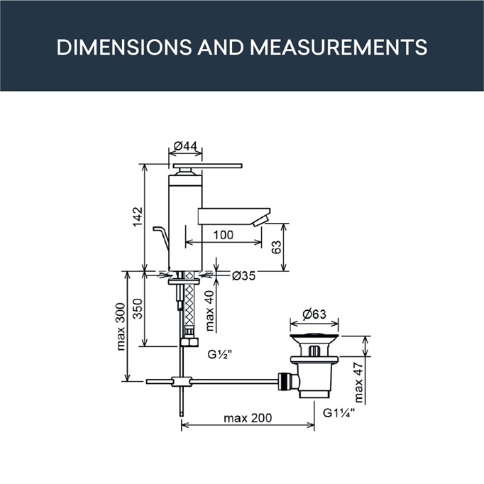 KNIEF BUILT-IN TUB 180X80CM + BATH TRAP INCLUDE OVERFLOW 1M