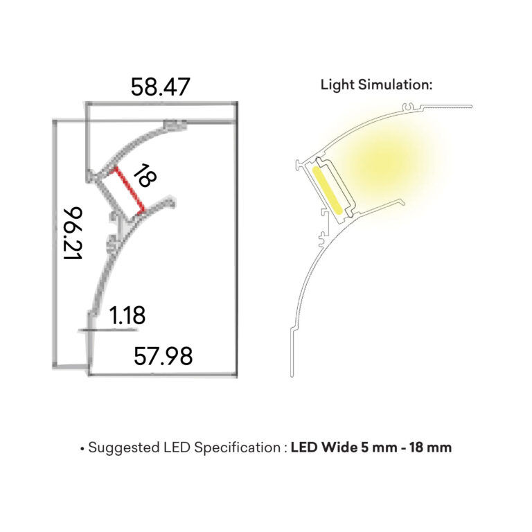 Penta Linea ALUMINIUM PROFILE + PLASTIC COVER 96.21X58.47MM POWDER COATED MATTE WHITE 3M/PC