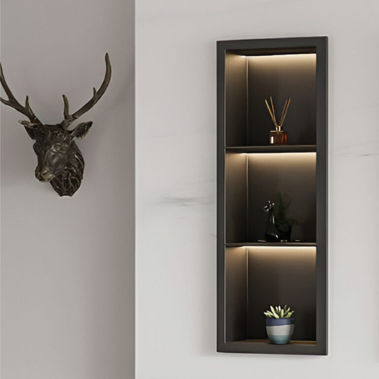 - Pencahayaan yang Lembut: Lampu LED hangat akan mempertegas garis aksesori dan menciptakan suasana tenang.