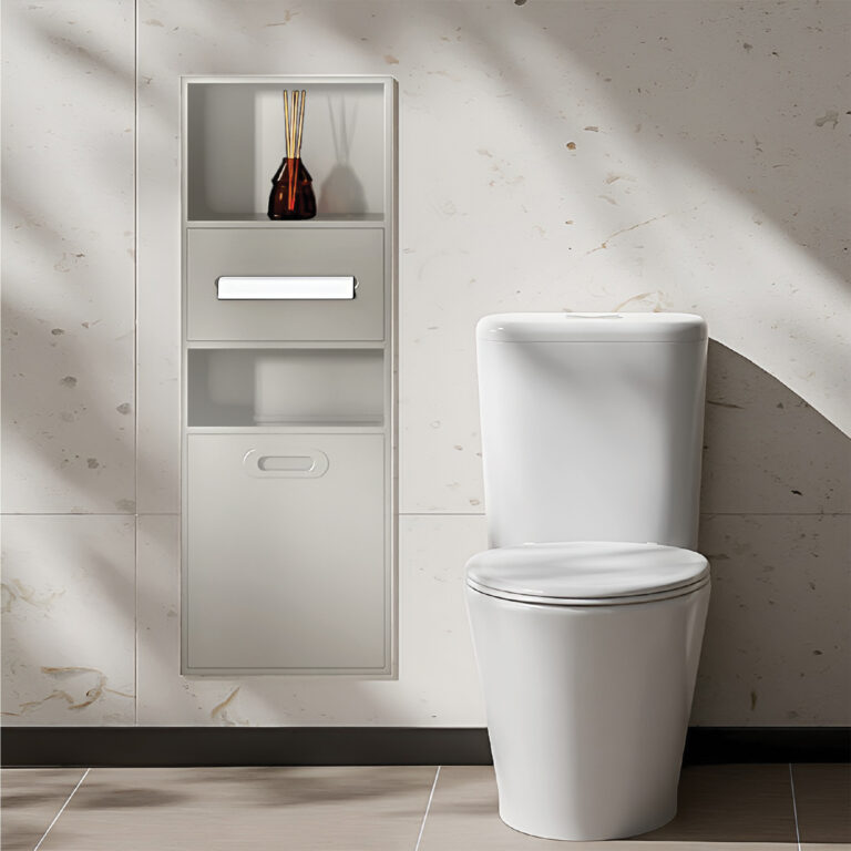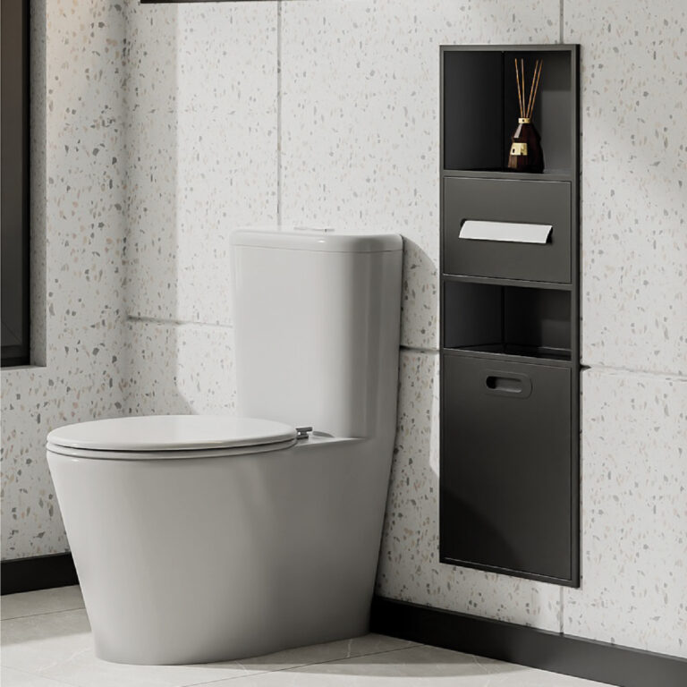 - Toilet Roll Holder: Model tertutup dengan penutup minimalis, menjaga tisu tetap kering dan rapi.