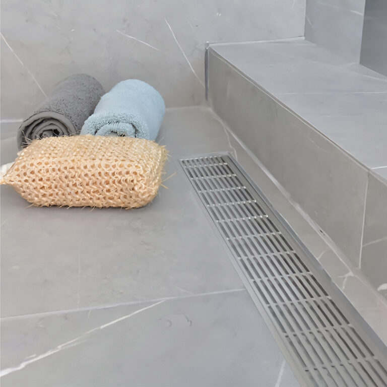 - Linear Drain: Drain panjang berbentuk garis, cocok untuk shower kamar mandi modern, memberikan tampilan minimalis dan mengalirkan air lebih cepat.