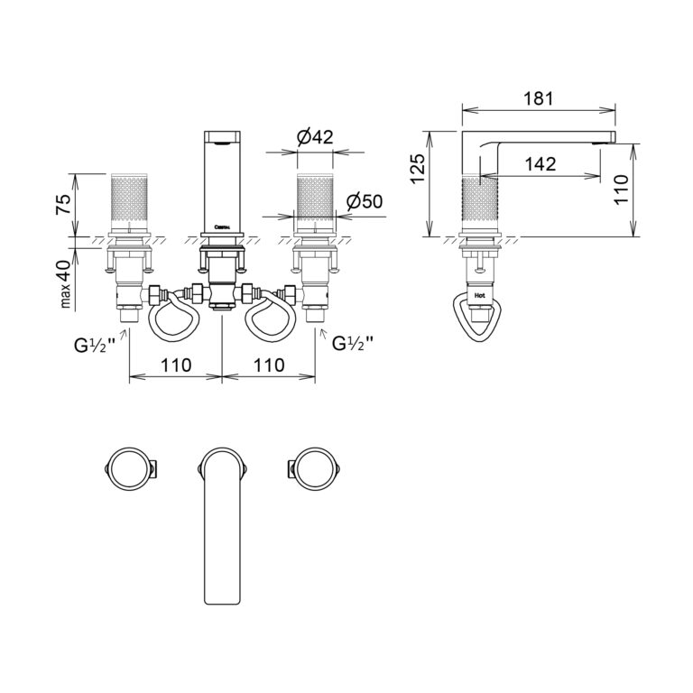 CRESTIAL LINEA 3-HOLE BASIN MIXER W/O POP UP WASTE, BRUSHED CHAMPAGNE FINISH