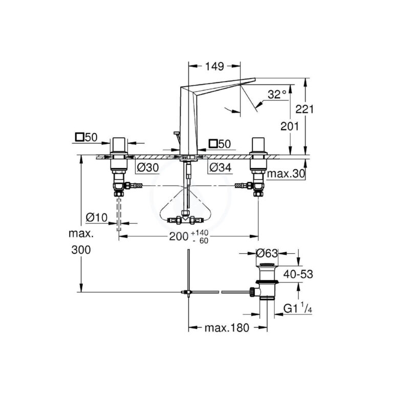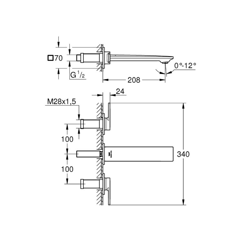 GROHE LINEARE WALL MOUNTED 2 HOLE L-SIZE