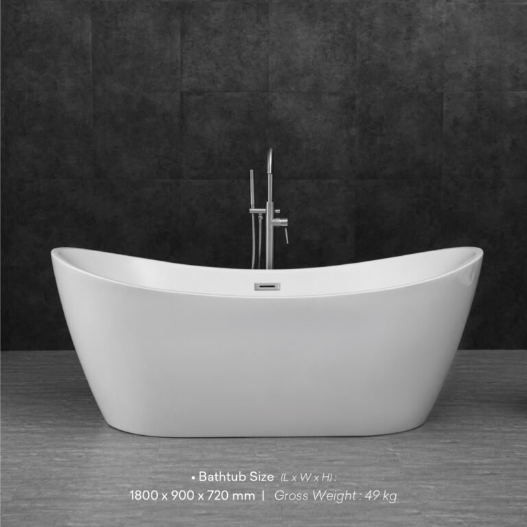 Wall-Mounted & Alcove Bathtub: Dipasang di antara dinding atau menempel di sisi ruangan, ideal untuk kamar mandi kecil dengan tata letak praktis.