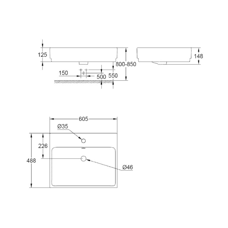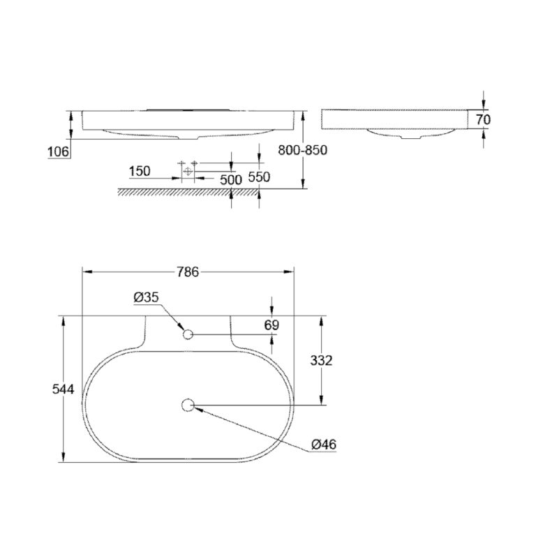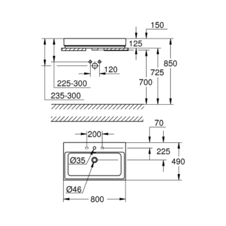 GROHE EUROCOSMO COUNTERTOP BASIN W/O OVERFLOW 80, 39070001