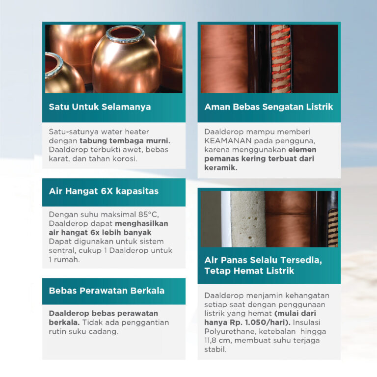 • Perawatan Rutin: Bersihkan tangki dari endapan, periksa elemen pemanas, ganti anode rod (untuk tangki) secara berkala, dan periksa sambungan listrik atau gas.