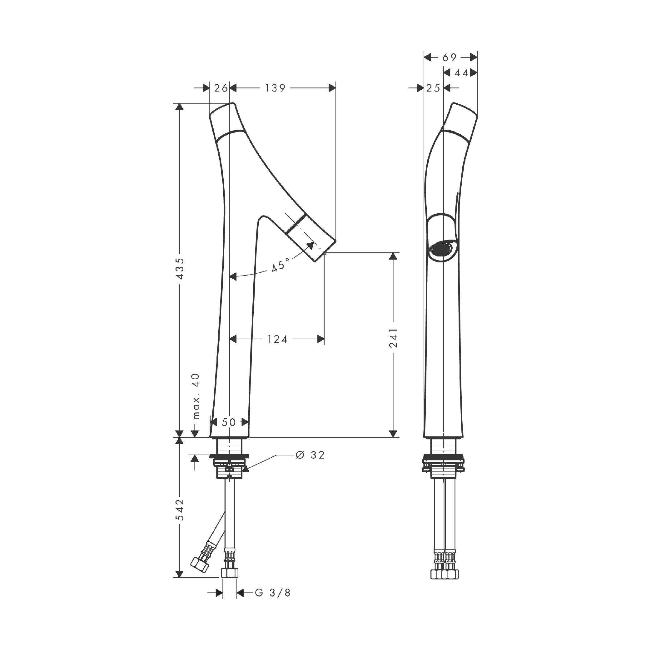 • spout height: 241 mm