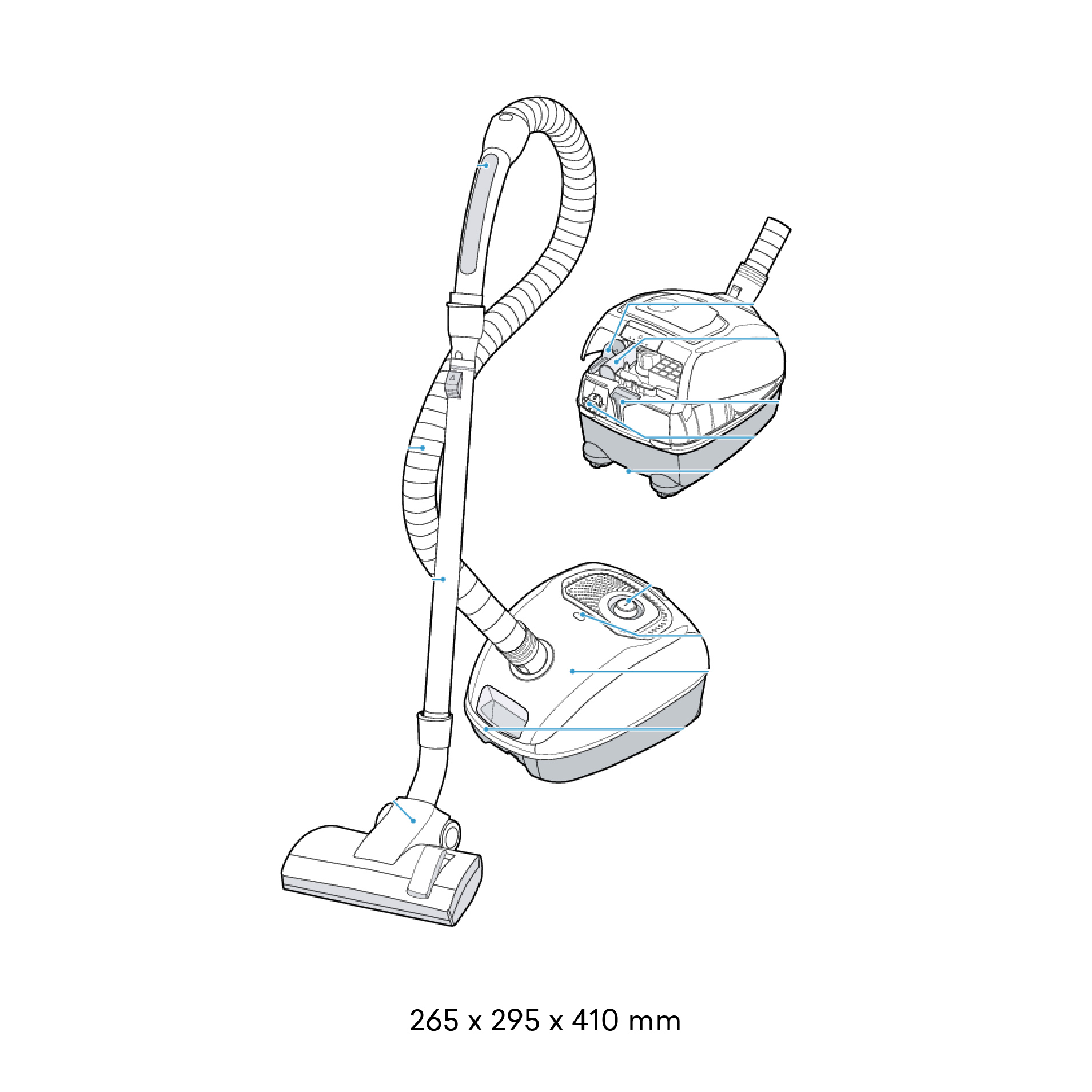 • PowerProtect system: The PowerProtect dustbag and system ensure long-lasting, high cleaning performance, even when the bag is fully filled.