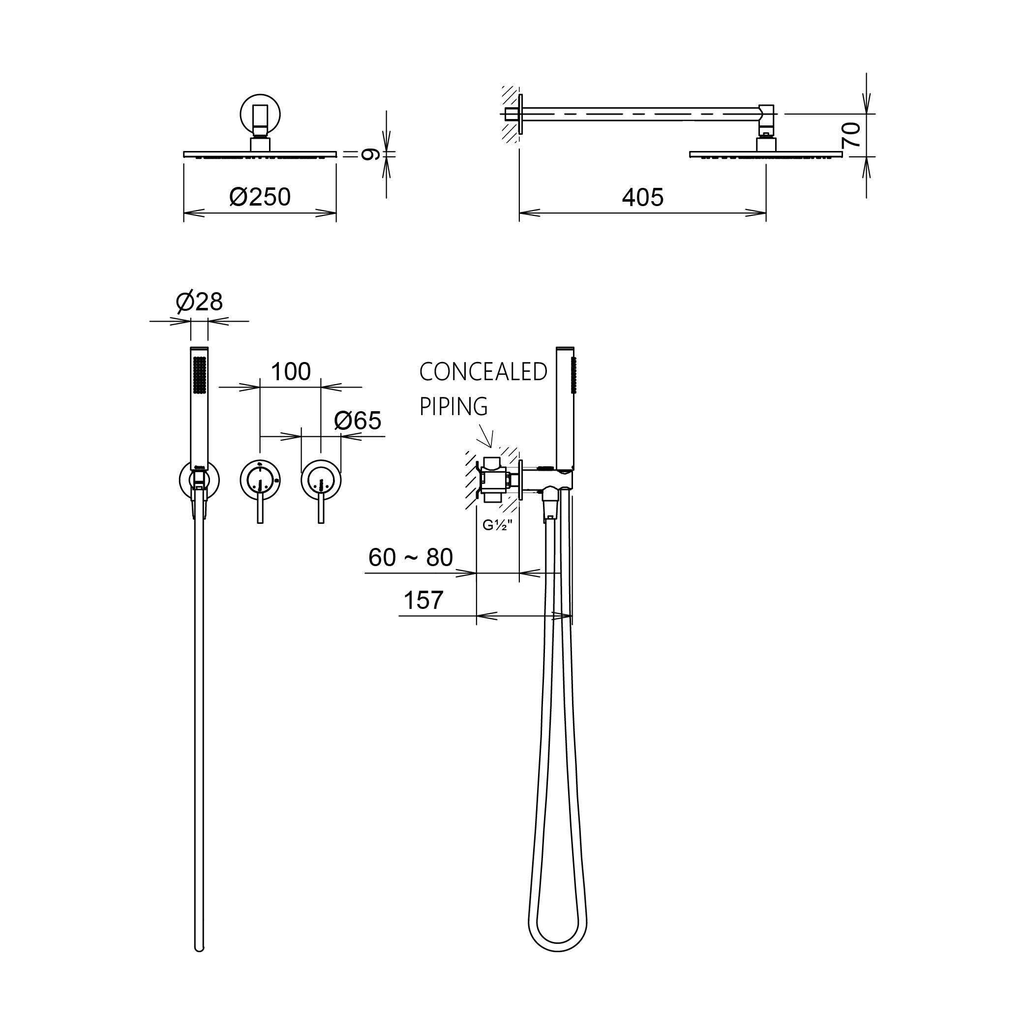 GROHTHERM SMARTCONTROL ROUND CONCEALED 3 FUNCT SHOWER SYSTEM 310