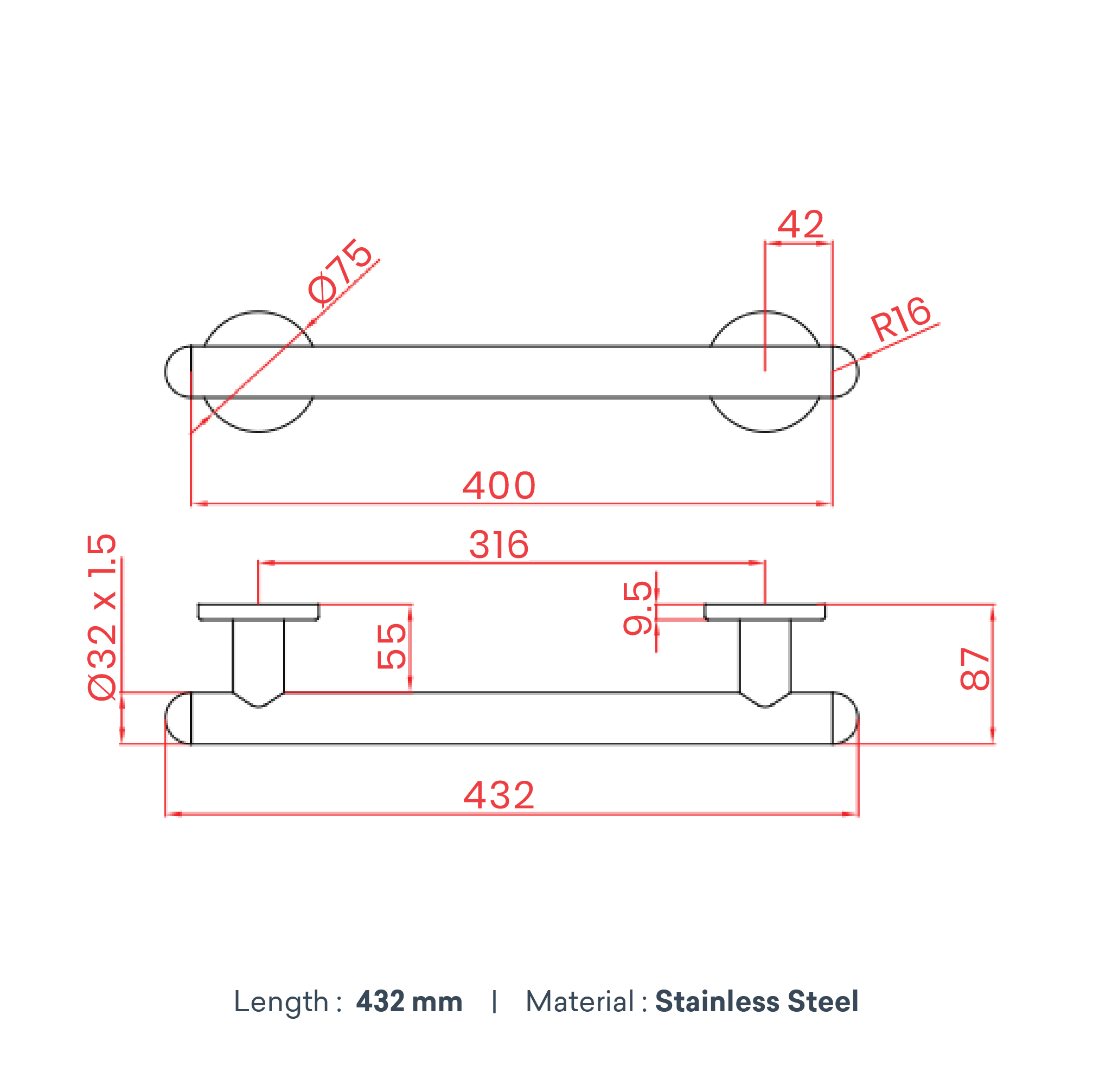 GOMAN FOLDING SUPPORTING BAR RAFFAELLO INOX RAF-XB76/94