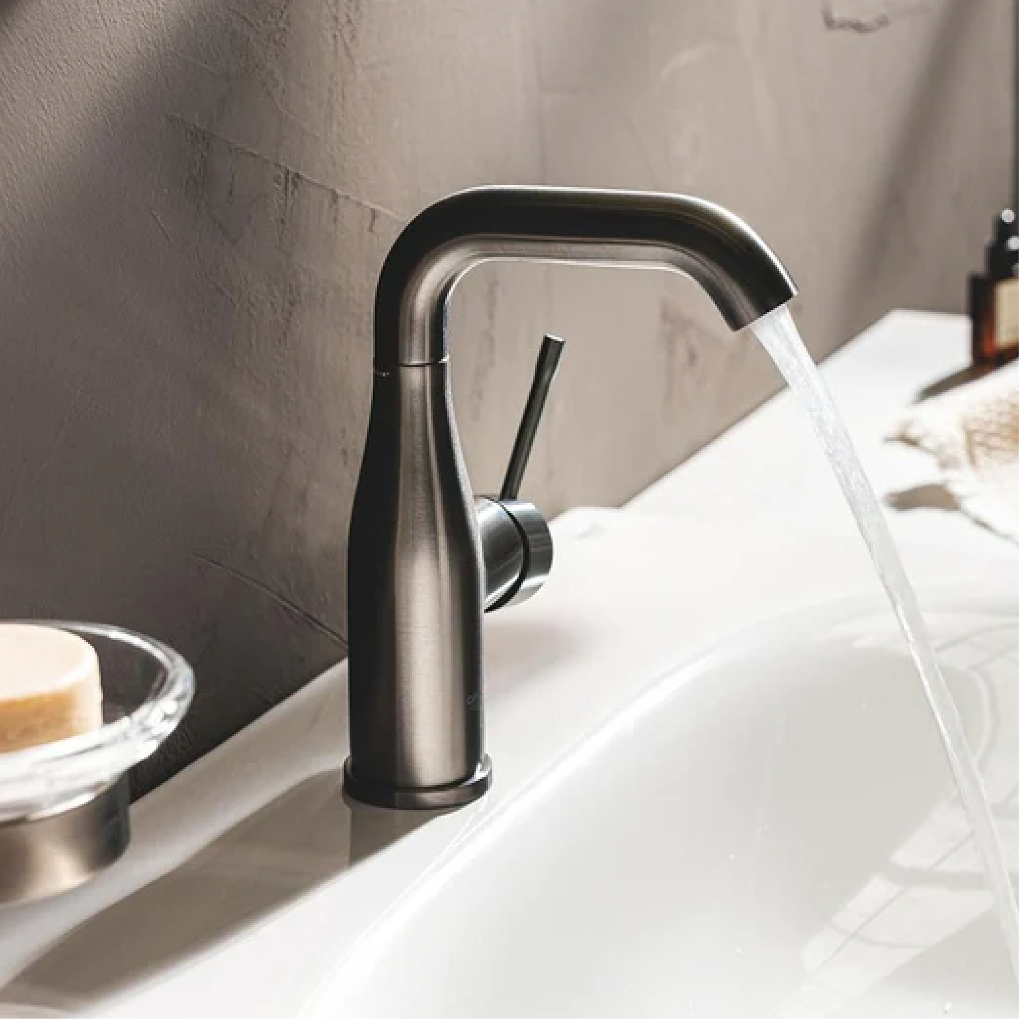 GROHE ESSENCE S-LEVER BASIN MIXER M-SIZE, BRUSHED HARD GRAPHITE