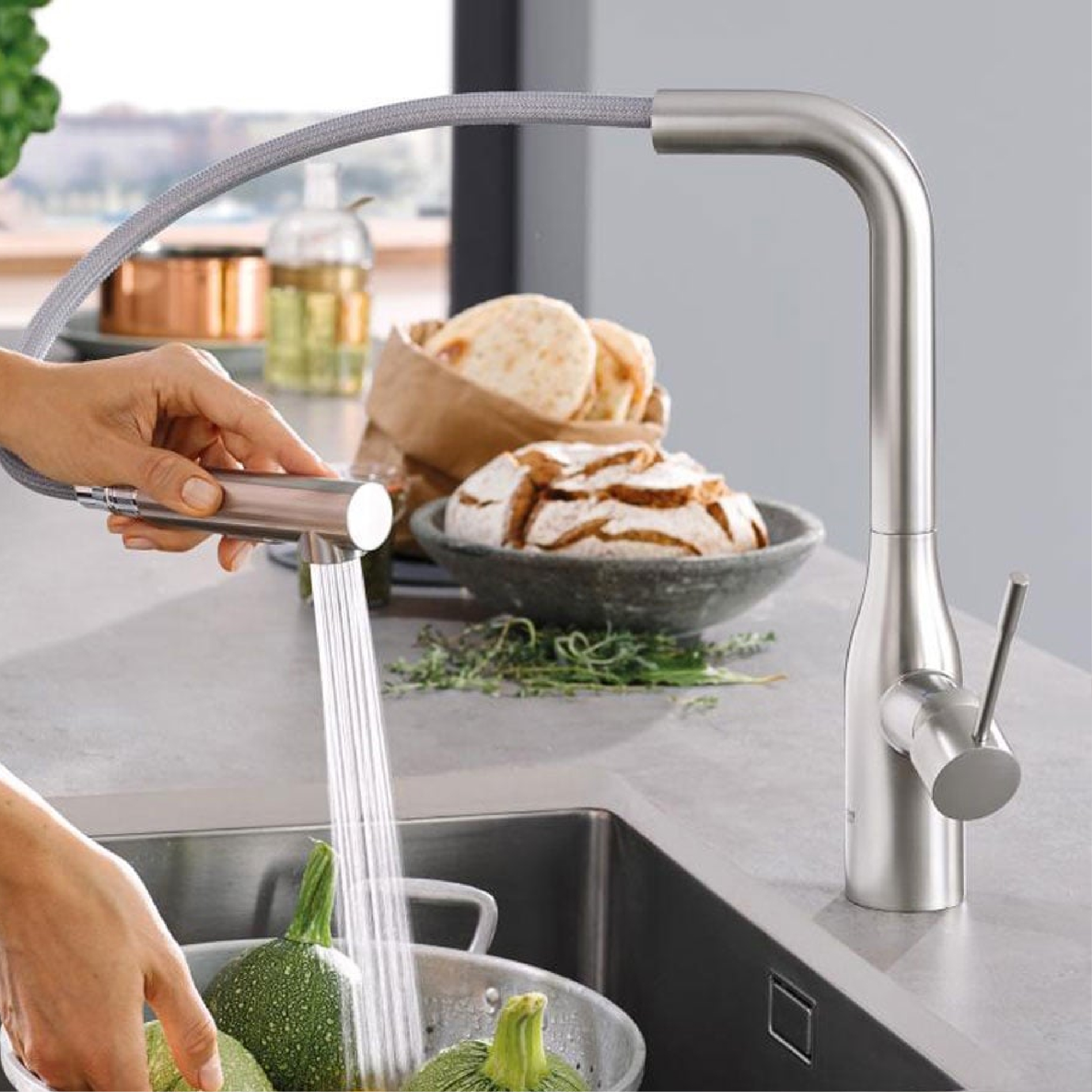 GROHE ESSENCE S-LEVER SINK HIGH SPOUT PULL OUT DUAL SPRAY, SUPERSTEEL 30270DC0