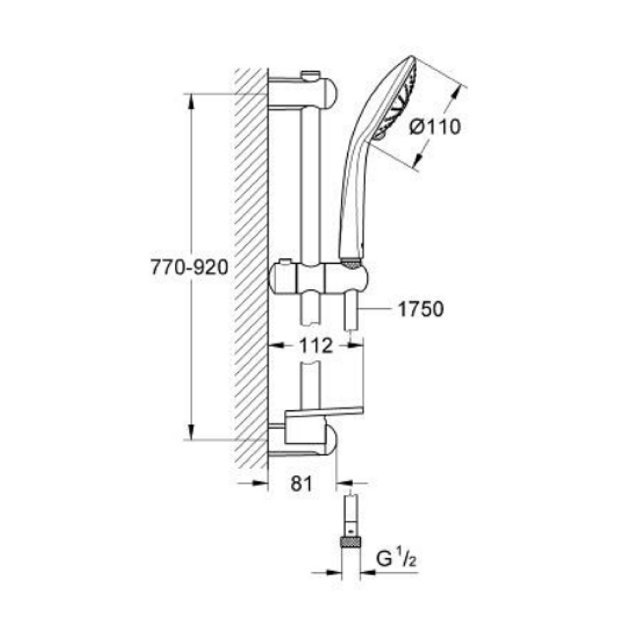 GROHE TEMPESTA 110 III SHOWER RAIL SET 600MM, CHROME 27794003