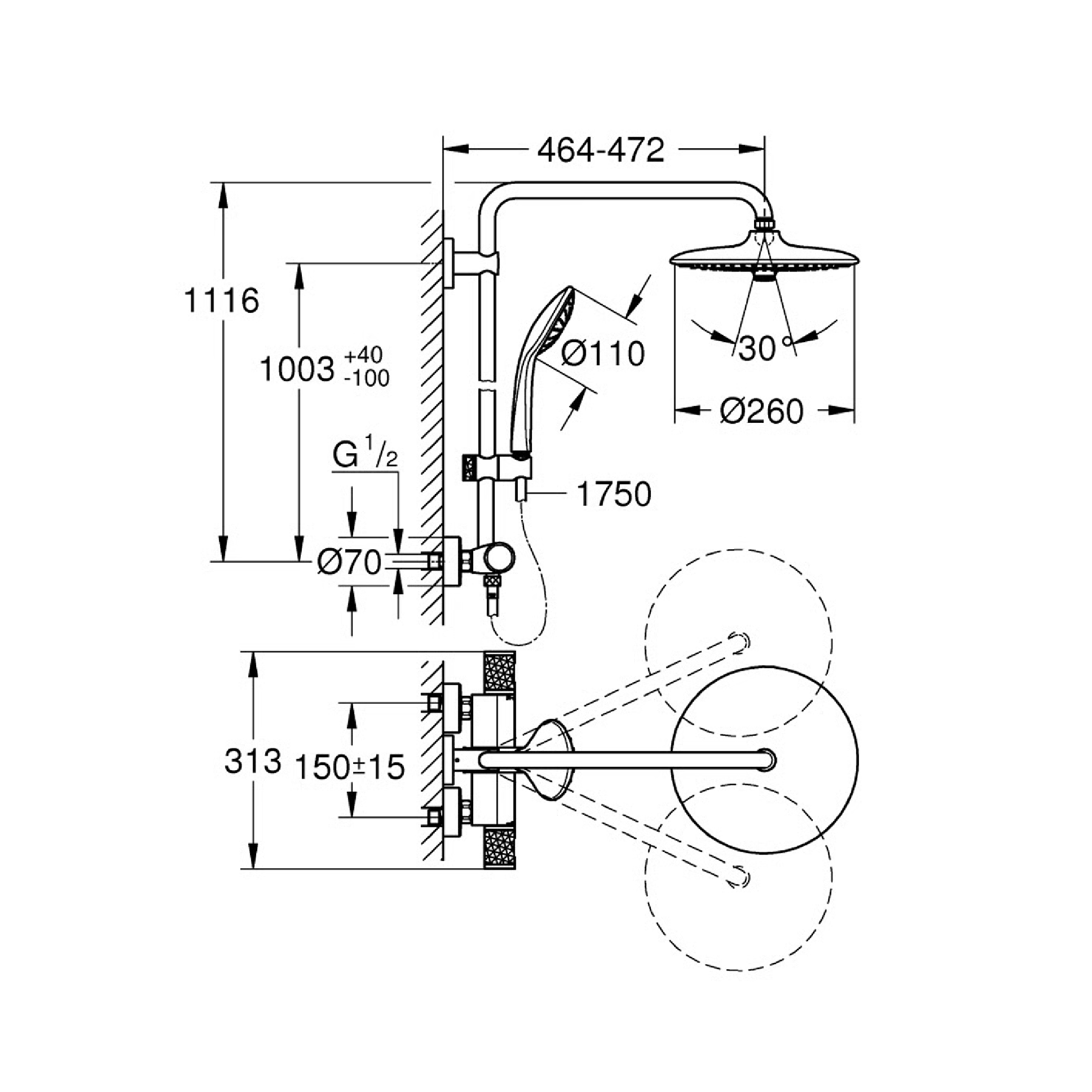 GROHE EUPHORIA 260 SHOWER SYSTEM WITH THERMOSTATIC 27296003