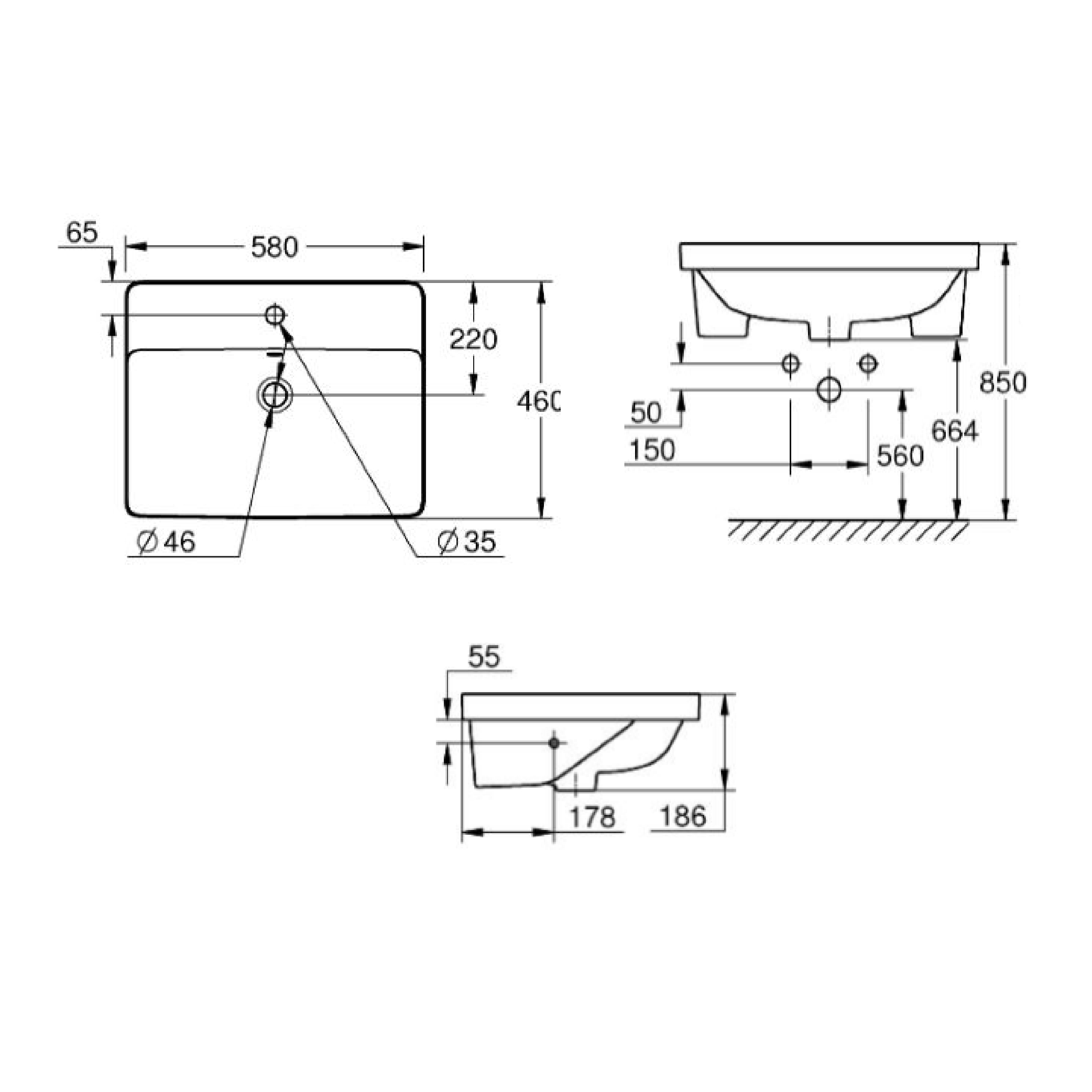 GROHE EUROCOSMO COUNTER TOP BASIN 60, 39291000