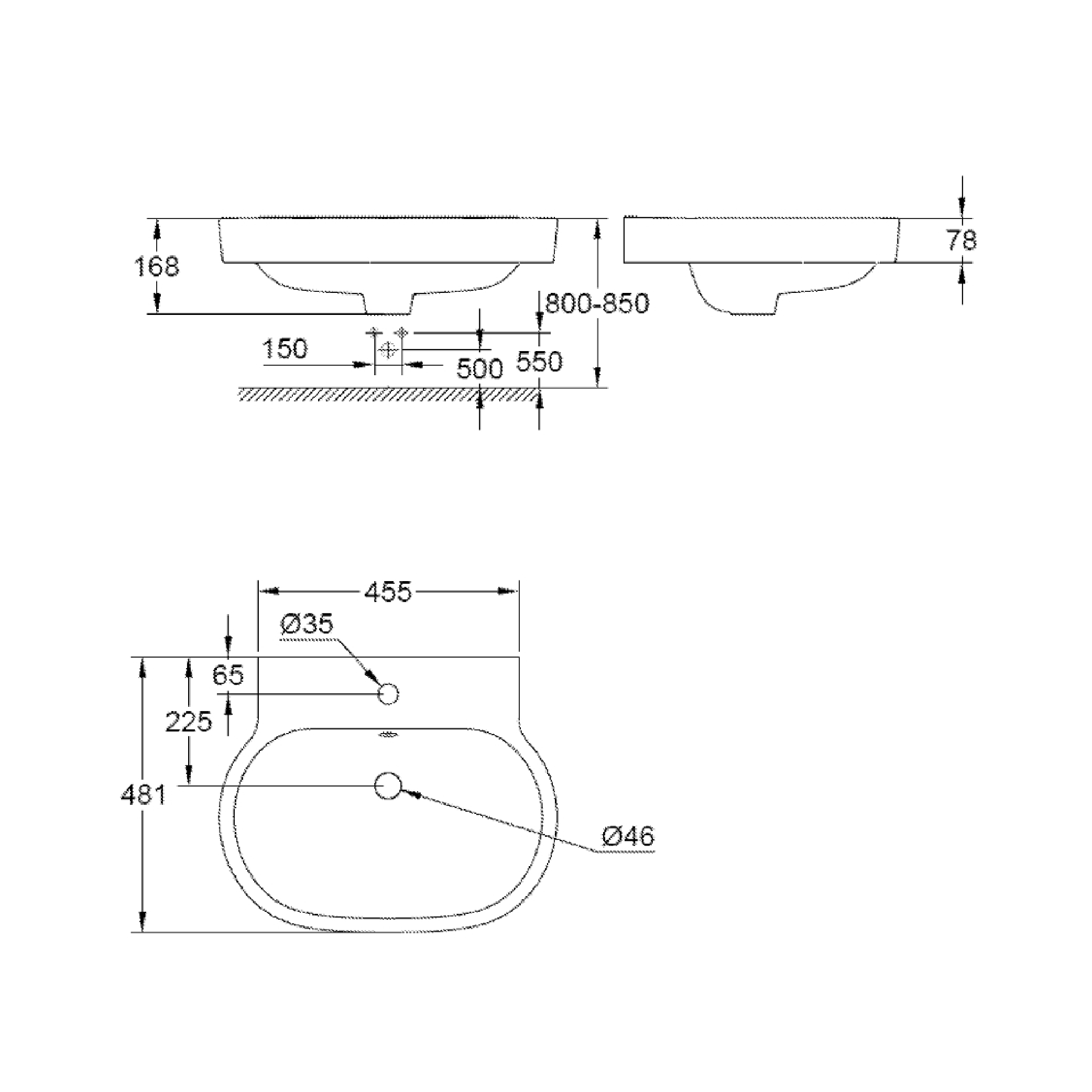 GROHE EUROCOSMO COUNTERTOP BASIN W/O OVERFLOW 80, 39070001