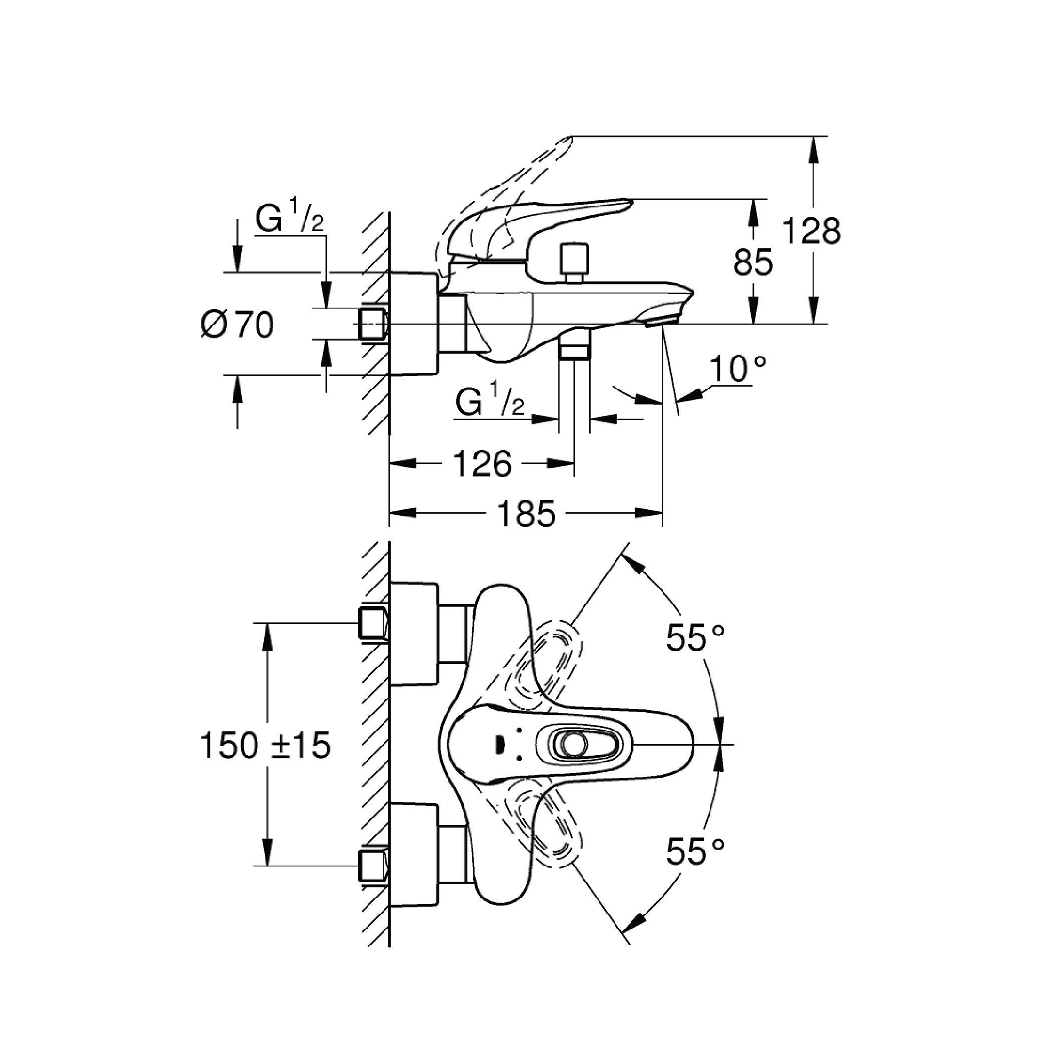 With natural curves the GROHE Eurostyle single-lever bath mixer looks perfect in a wide variety of bathroom designs.