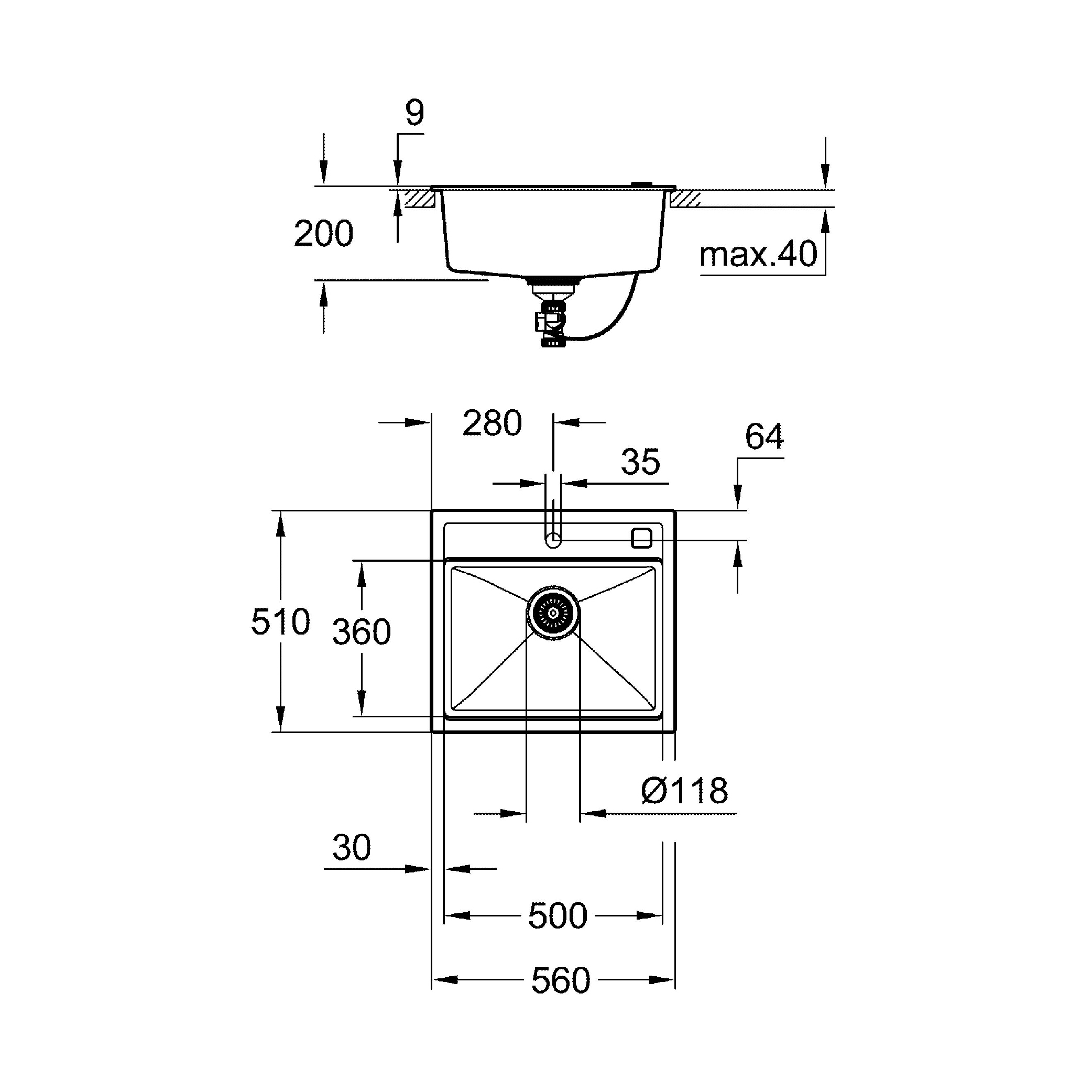 GROHE K700 COMPOSITE SINK K700 60-C 56/51 1.0