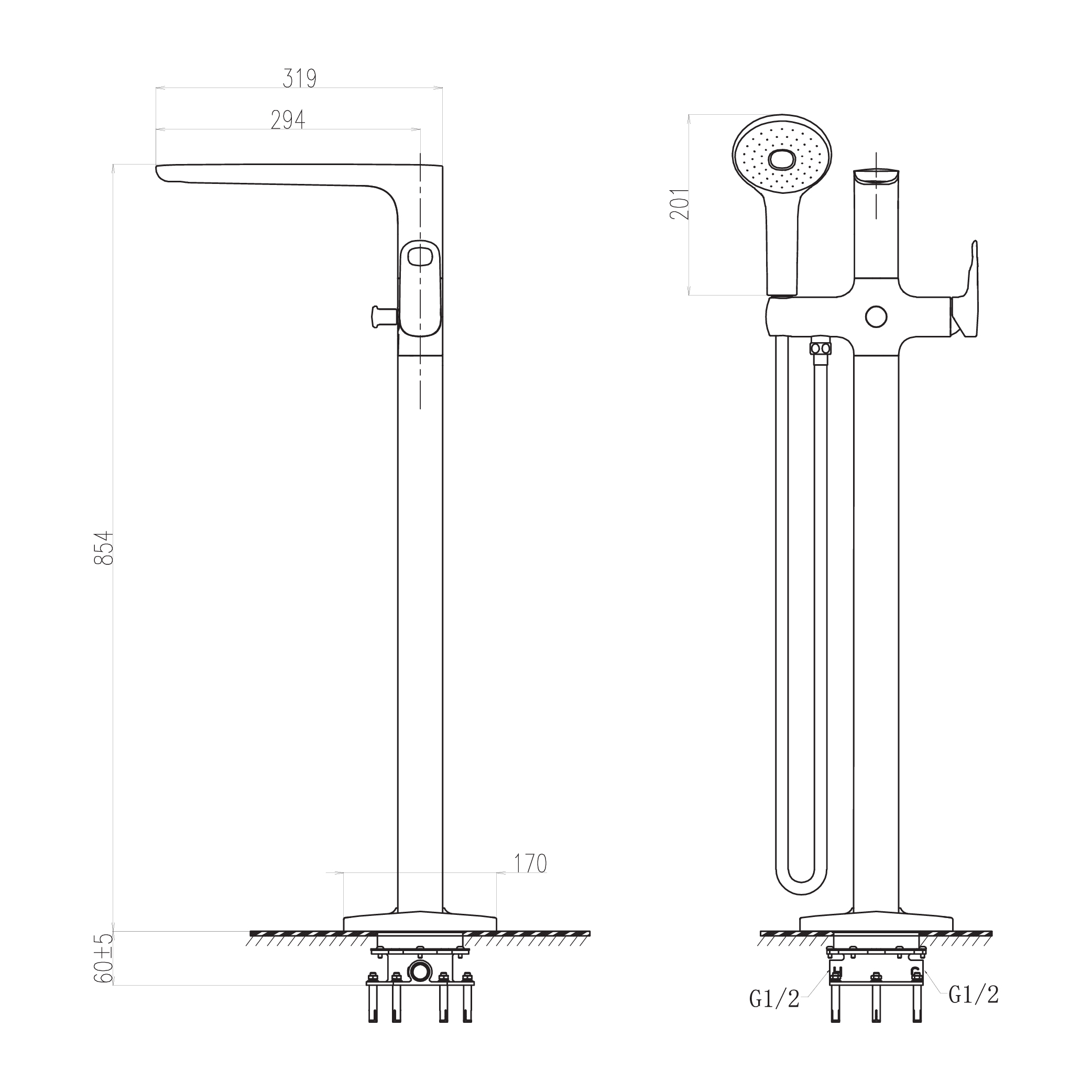 INAX S600 FREESTANDING BATH & SHOWER MIXER CHROME FFIXCS16-6B4500BG0