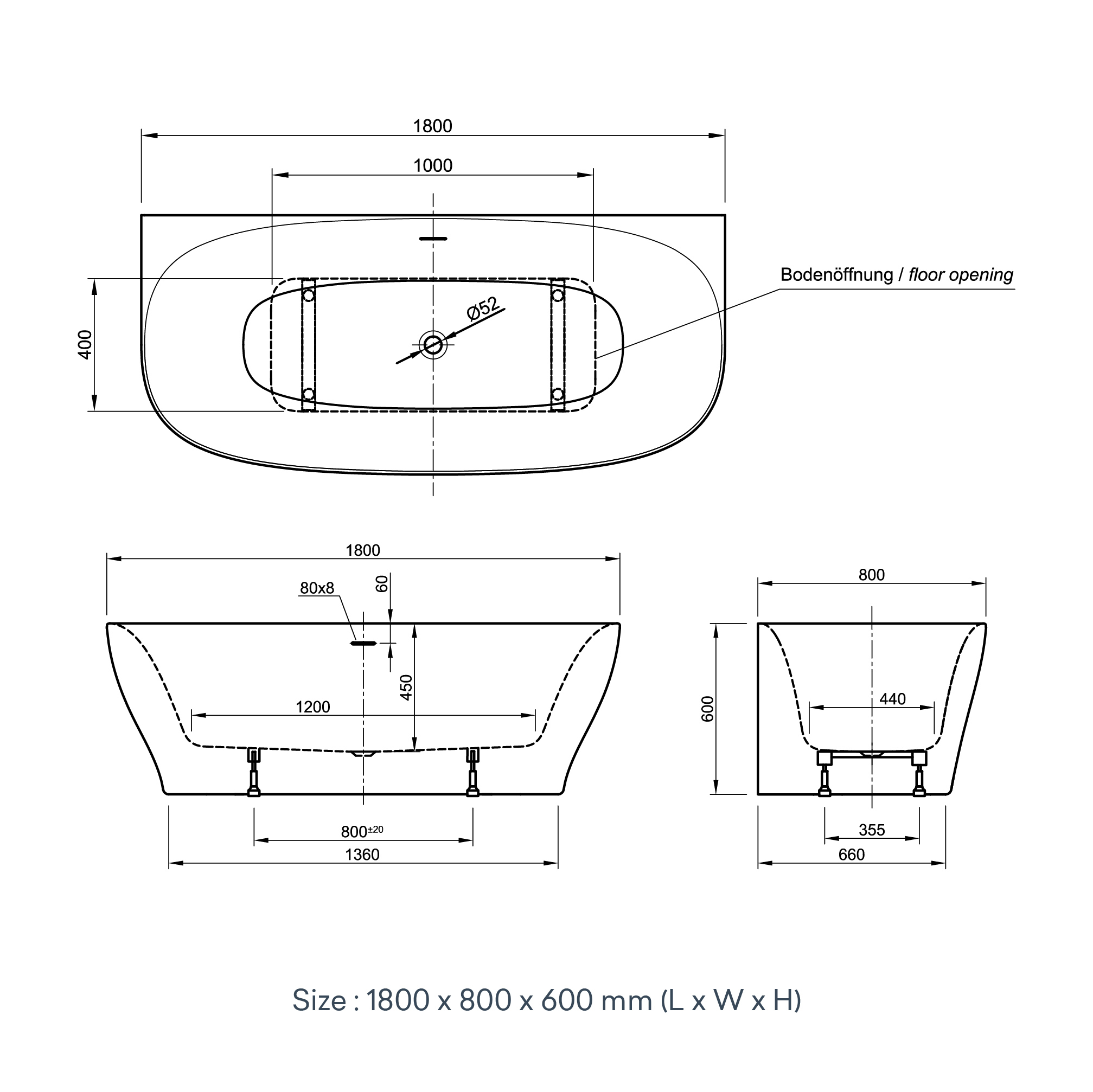 KNIEF DREAM WALL BATHTUB 1800X 800X600MM