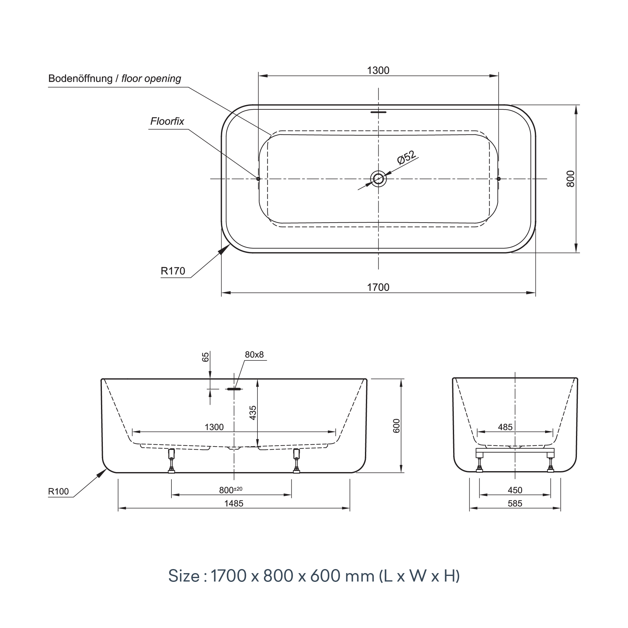 • Dimensions: 1700 x 800 x 600 mm (L x W x H)