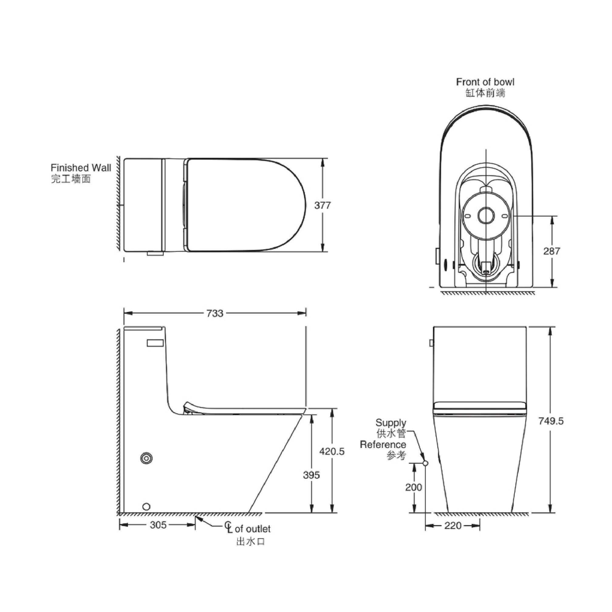 • Dual-flush offers a choice of 0.8 or 1.28 gpf (3.0 or 4.8 lpf)