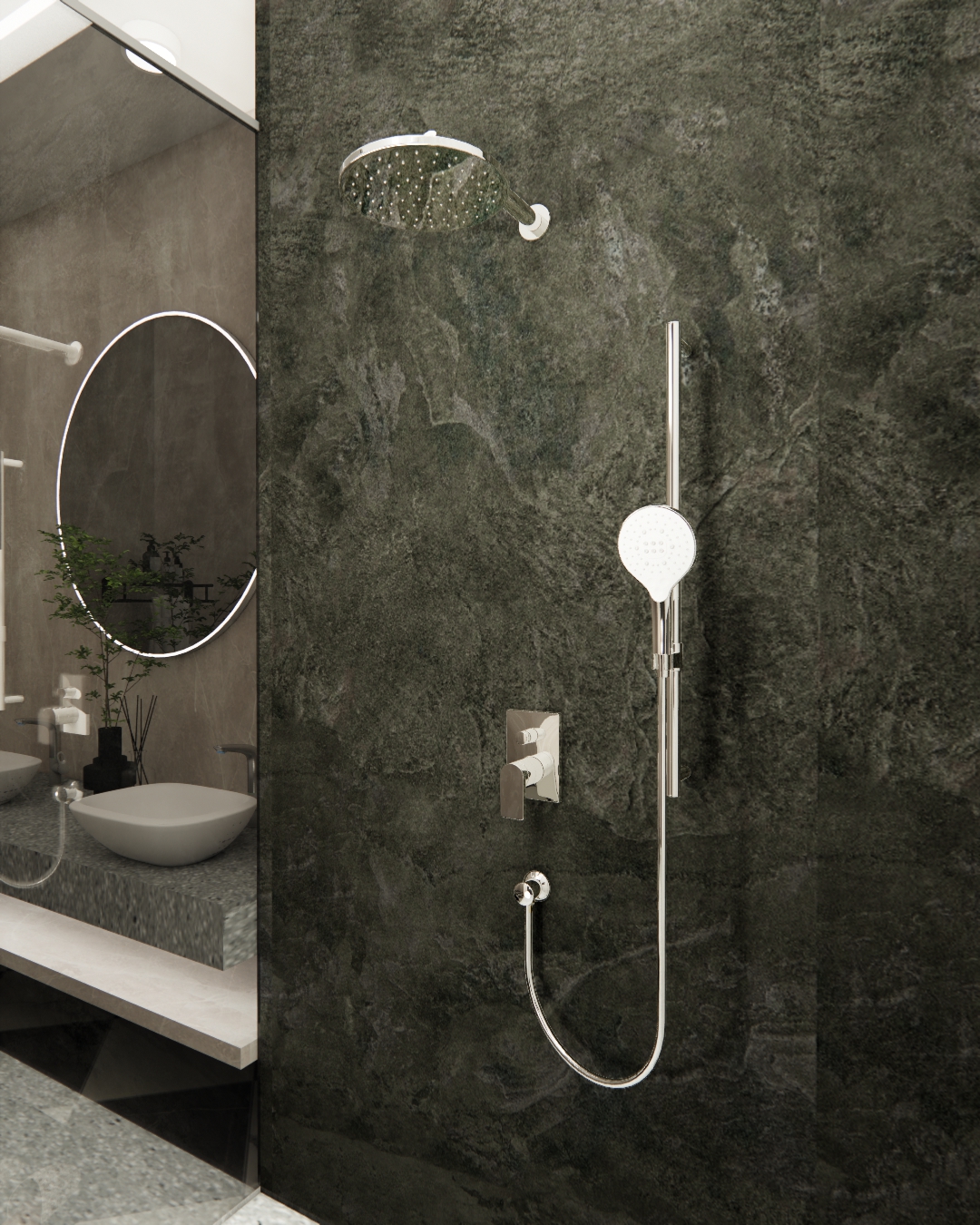 GROHTHERM SMARTCONTROL ROUND CONCEALED 3 FUNCT SHOWER SYSTEM 310, BRUSHED HARD GRAPHITE 34863AL0