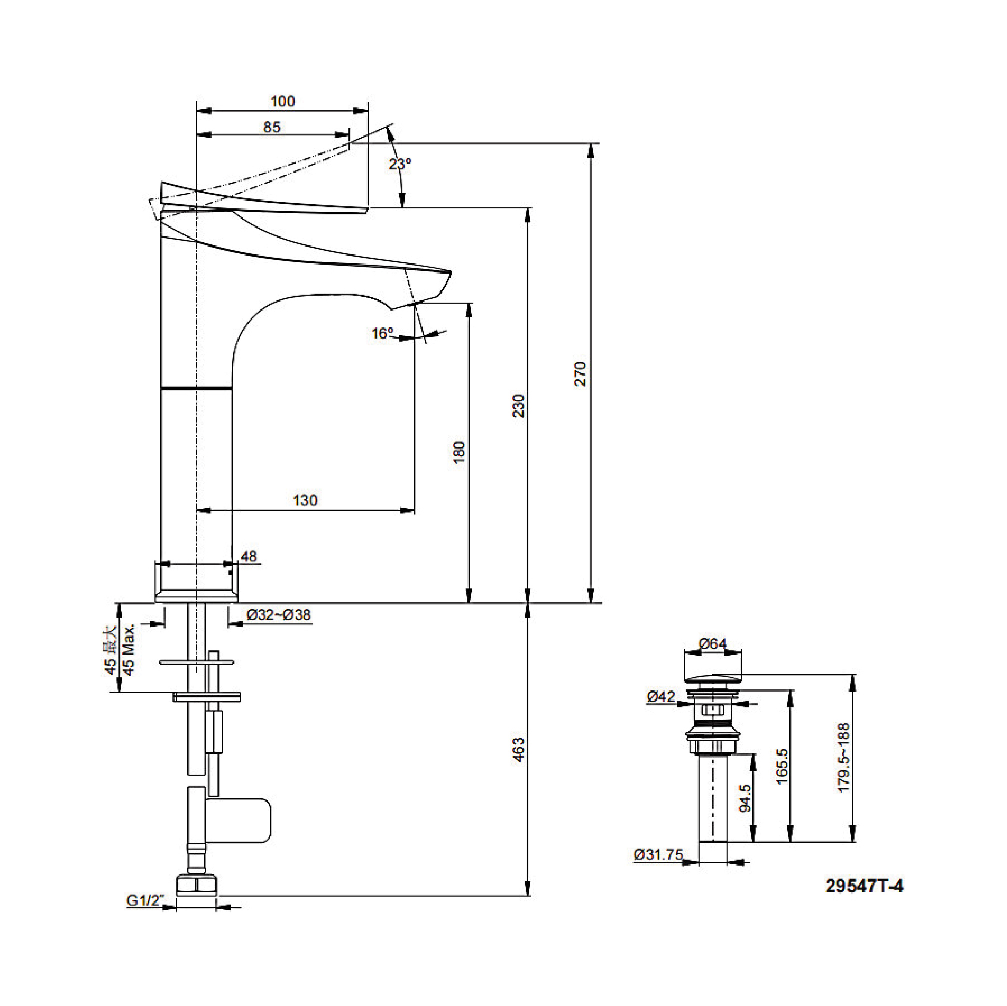 KOHLER FORE ARC TALL SINGLE HANDLE LAVATORY FAUCET K-29547T-4-BL