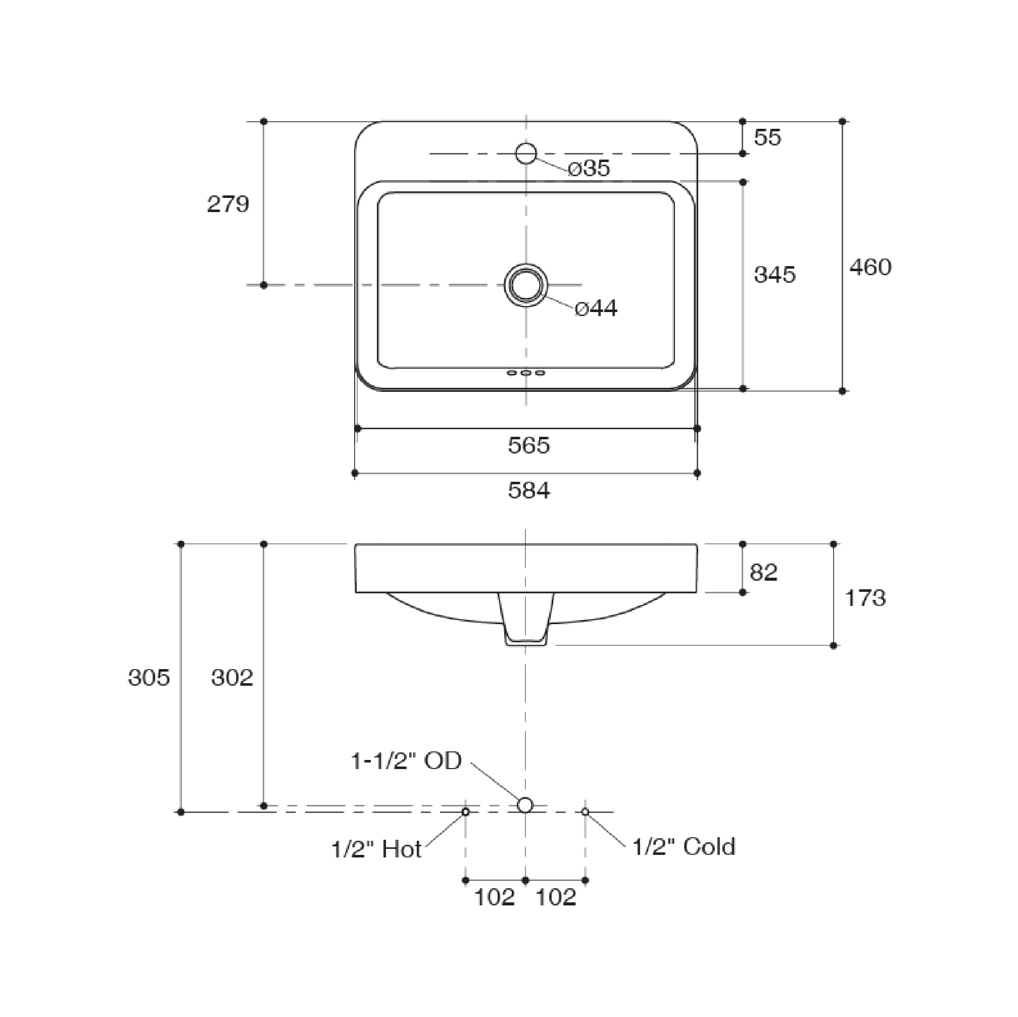 • Dimensions: 584 x 460 x 173 mm