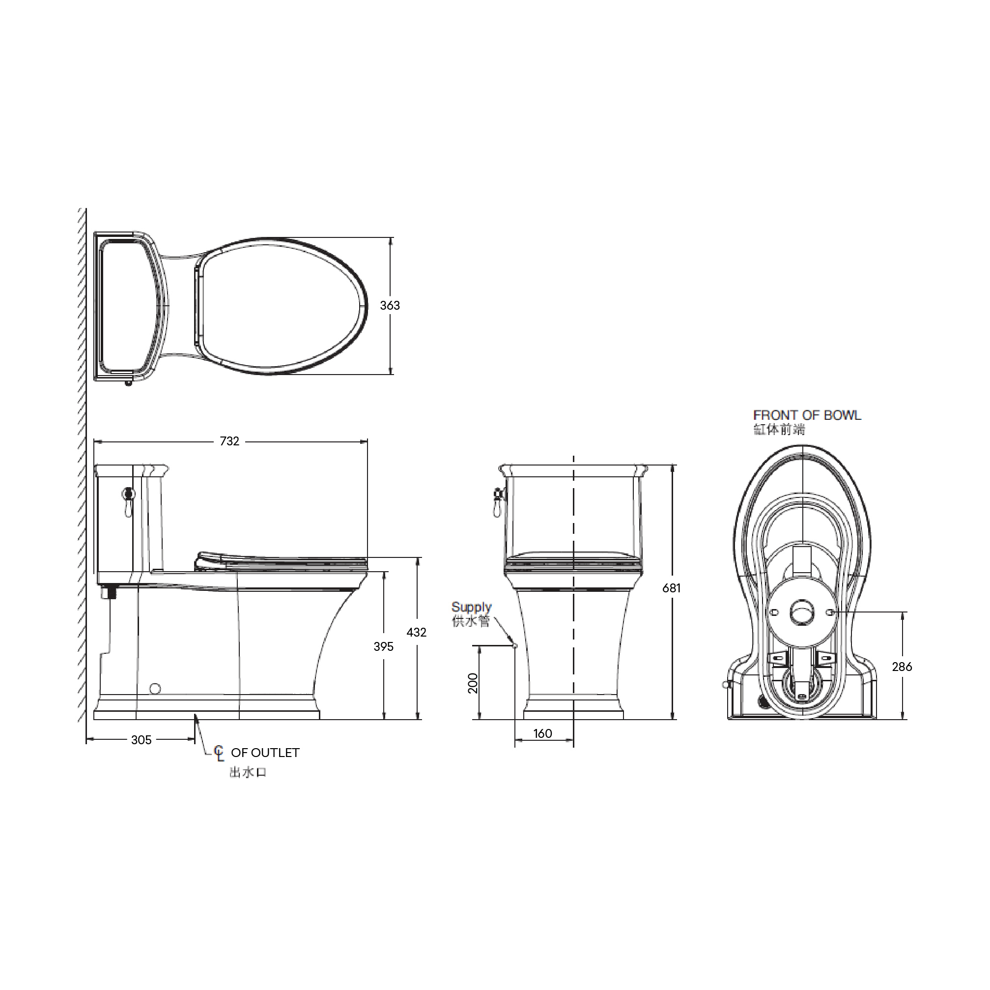 • Compact elongated bowl offers added comfort while occupying the same space as a round-front bowl.