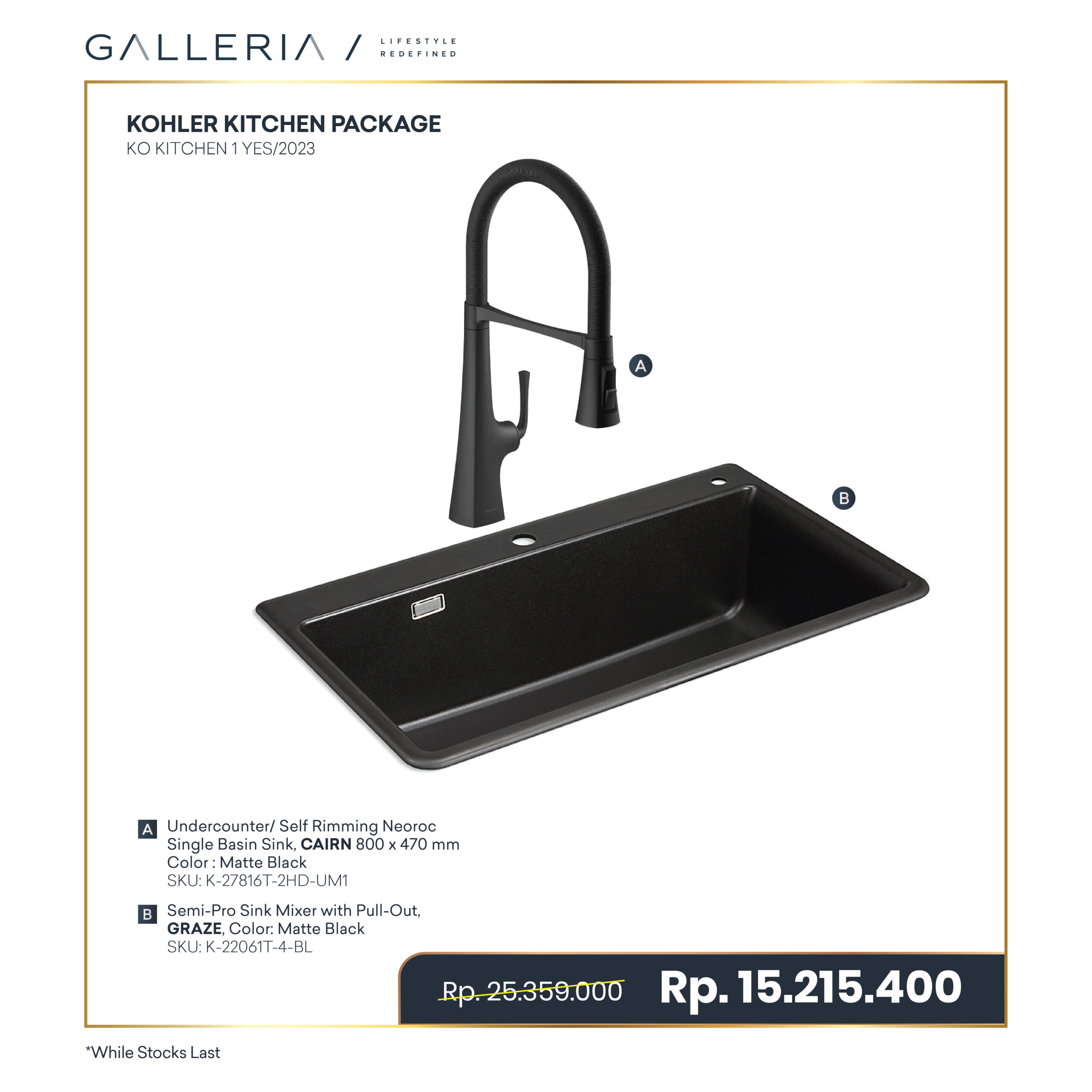 B. Undercounter/ Self Rimming Neoroc Single Basin Sink, CAIRN 800 x 470 mm. Color : Matte Black. SKU: K-27816T-2HD-UM1