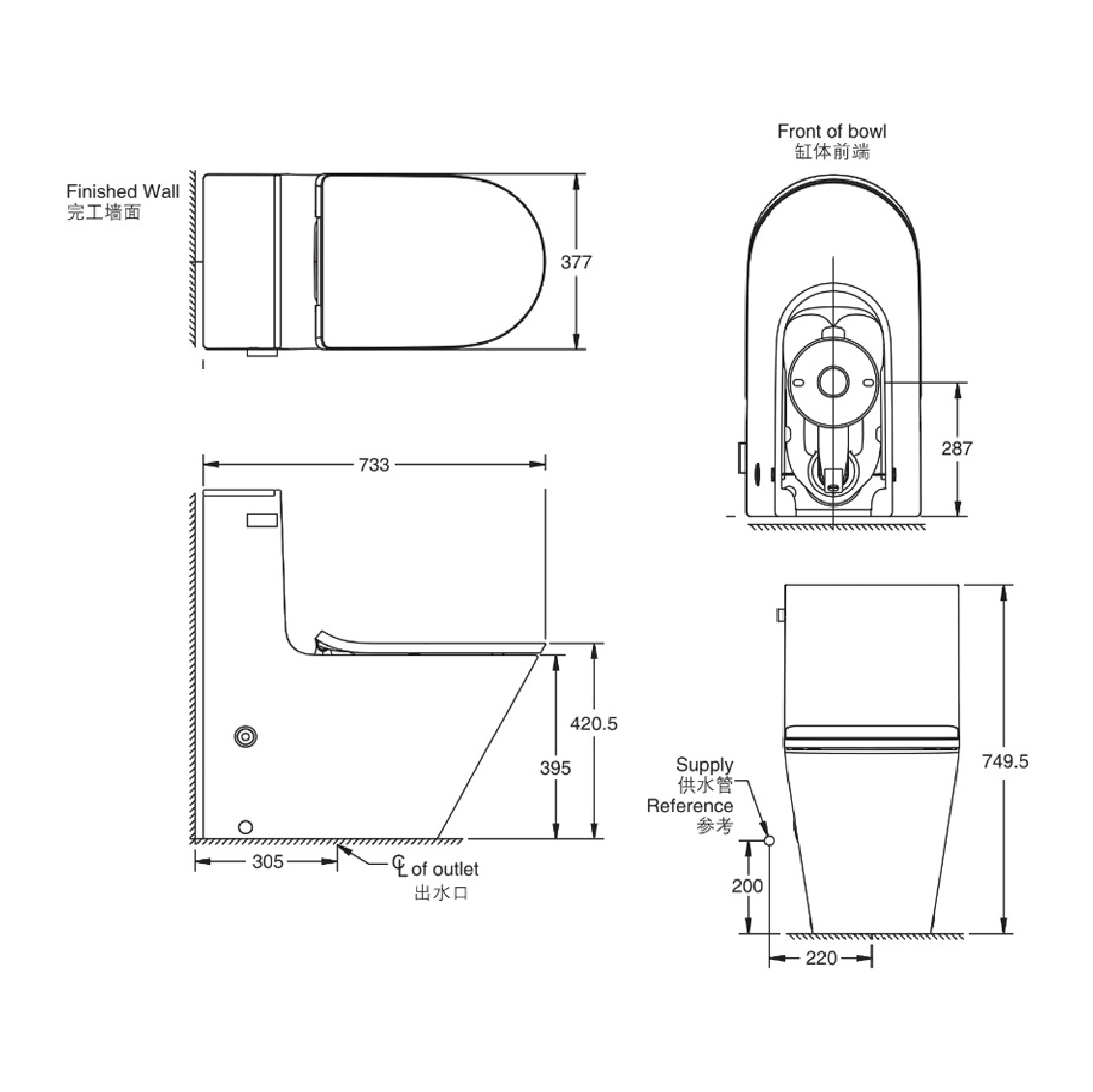 • Dual-flush offers a choice of 0.8 or 1.28 gpf (3.0 or 4.8 lpf)