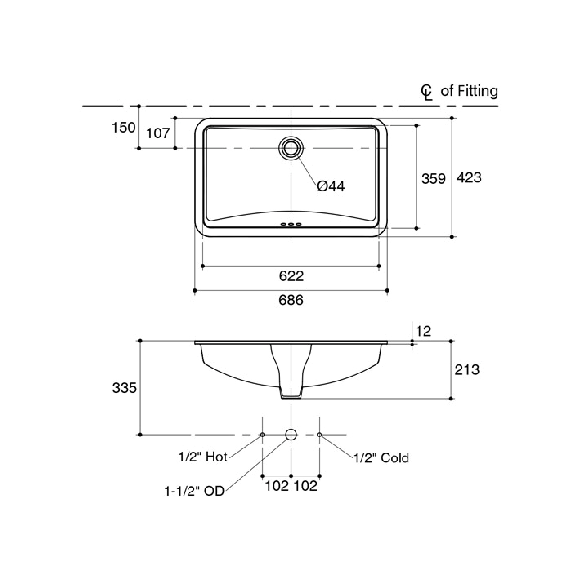 • Outer Dimension: (L x W x H) 686 X 423 X 213 mm