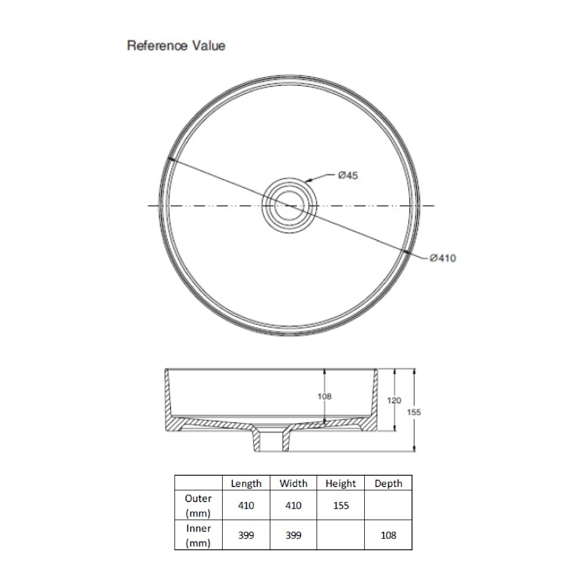 410 X 410 X 120 mm ,Depth: 108 mm |