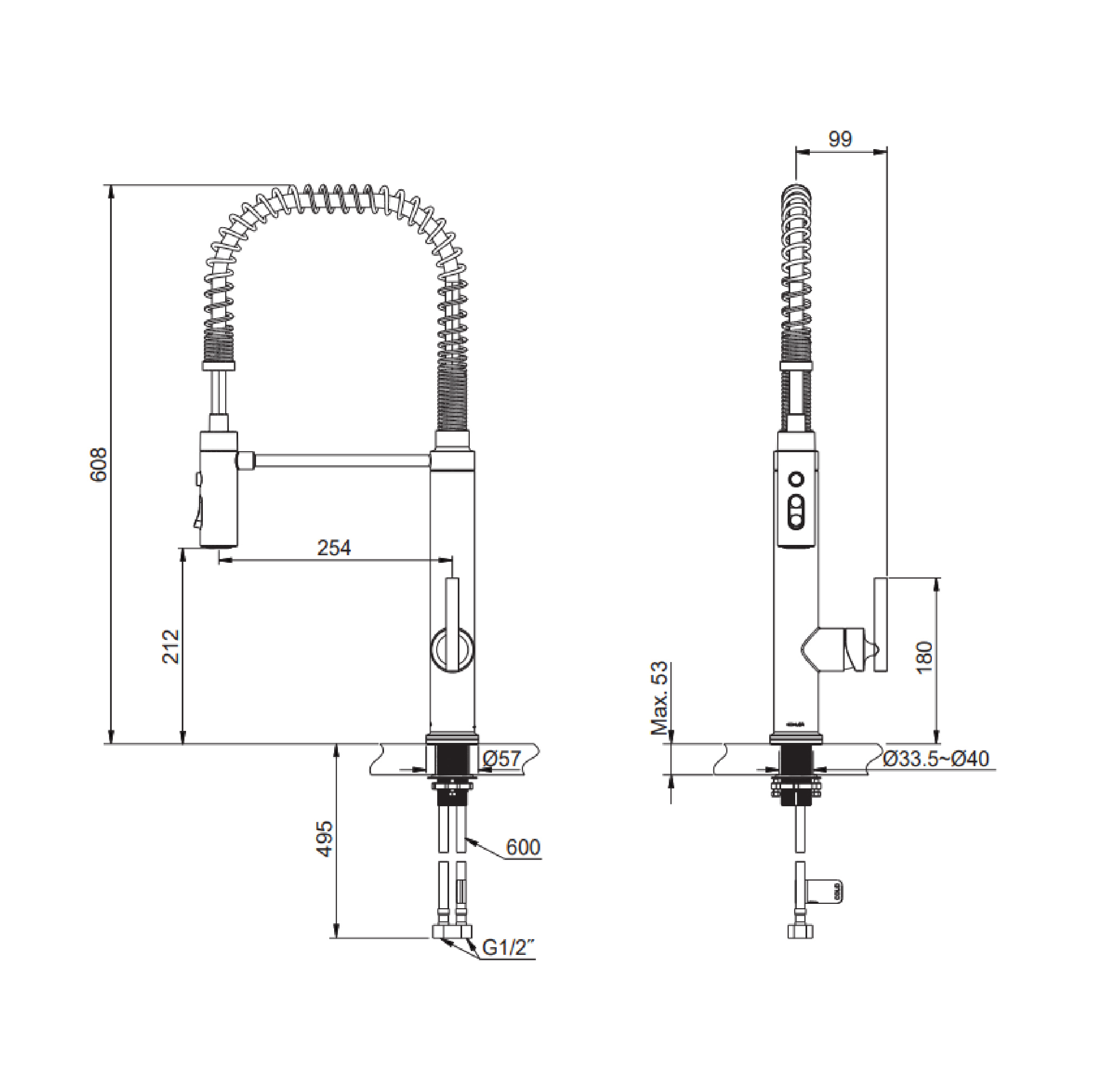 • Professional-style faucet with an easy-to-clean coated hose and removable coil