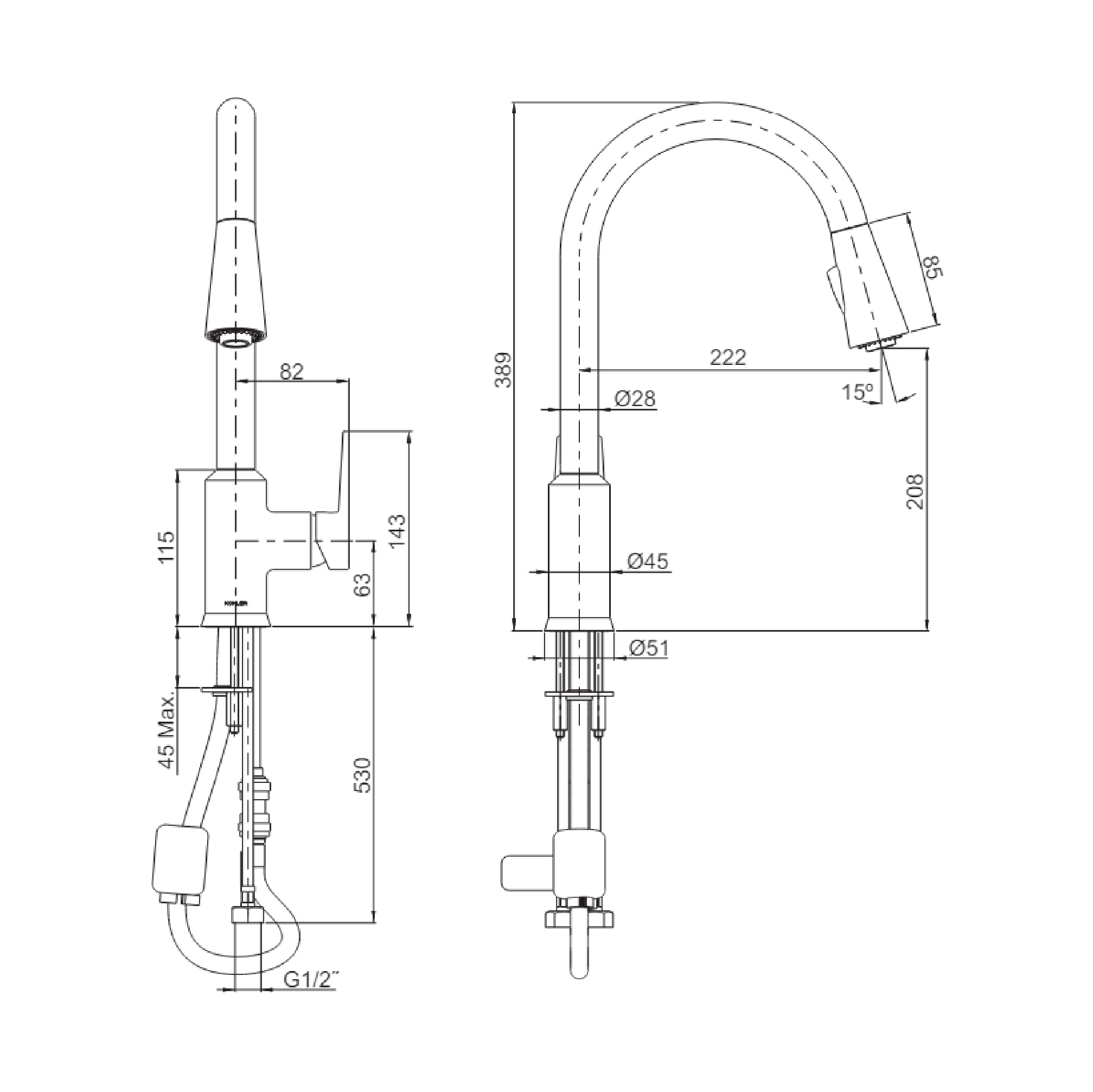 • Two-function pull-down sprayhead allows you to switch from aerated stream to Sweep™ spray