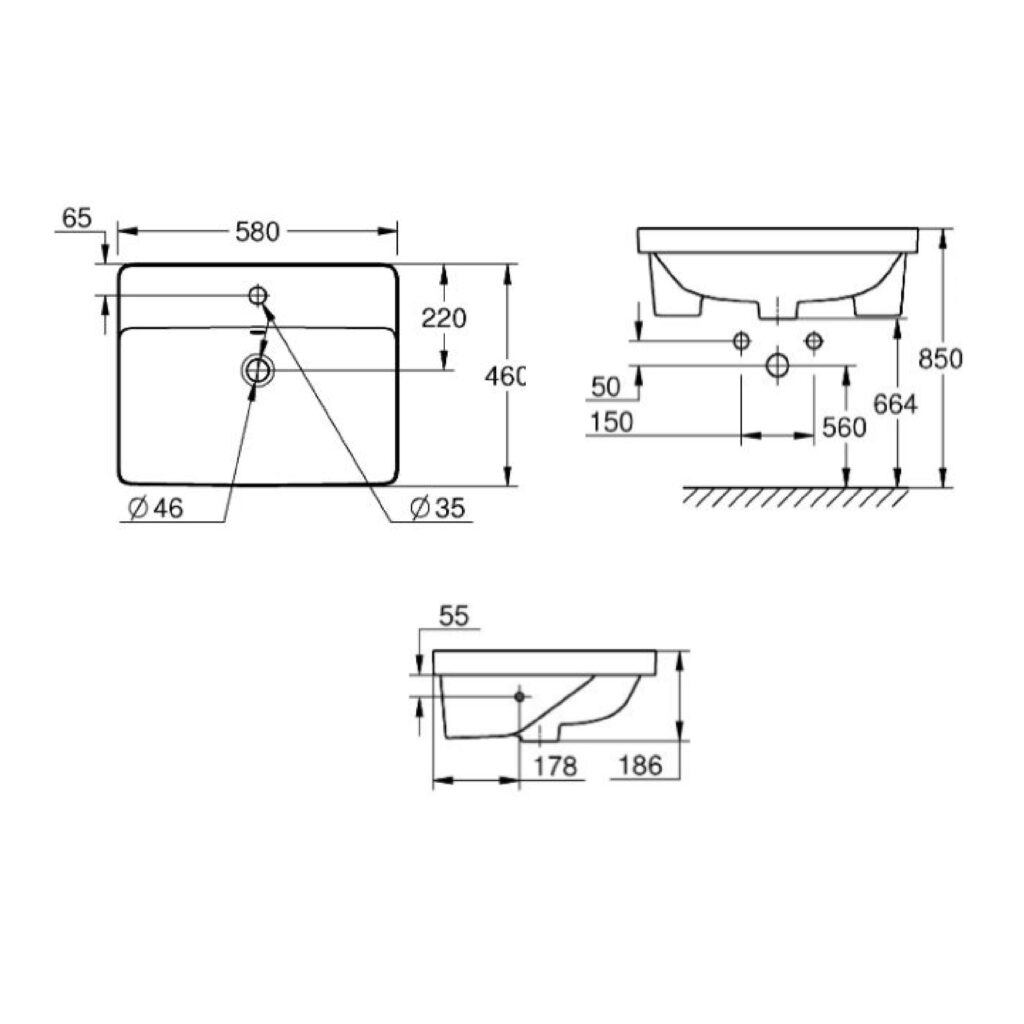 INAX CERAFINE VESSEL BASIN WITH DECK CLS640F1-6DF00-A