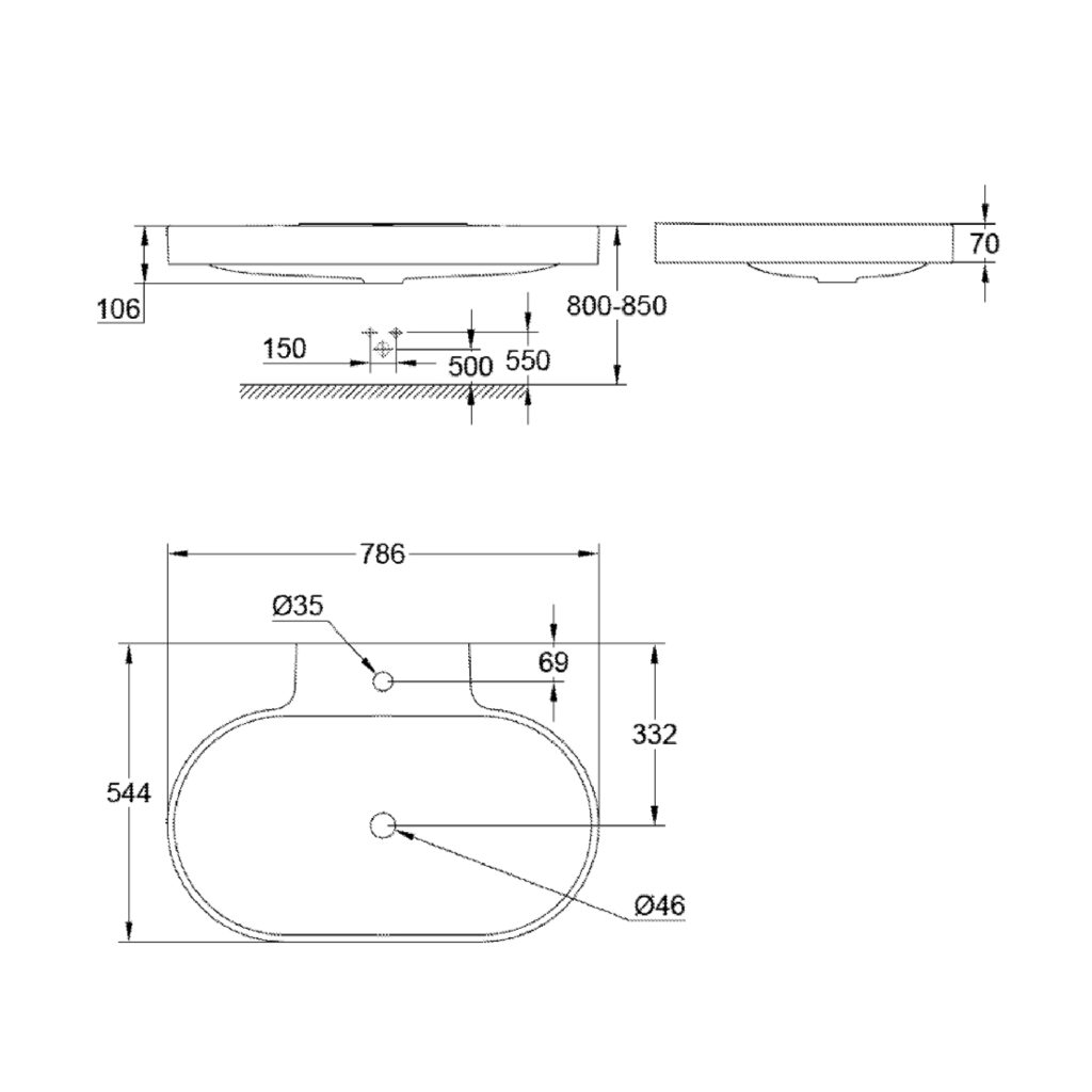 GROHE EUROCOSMO COUNTERTOP BASIN W/O OVERFLOW 80, 39070001