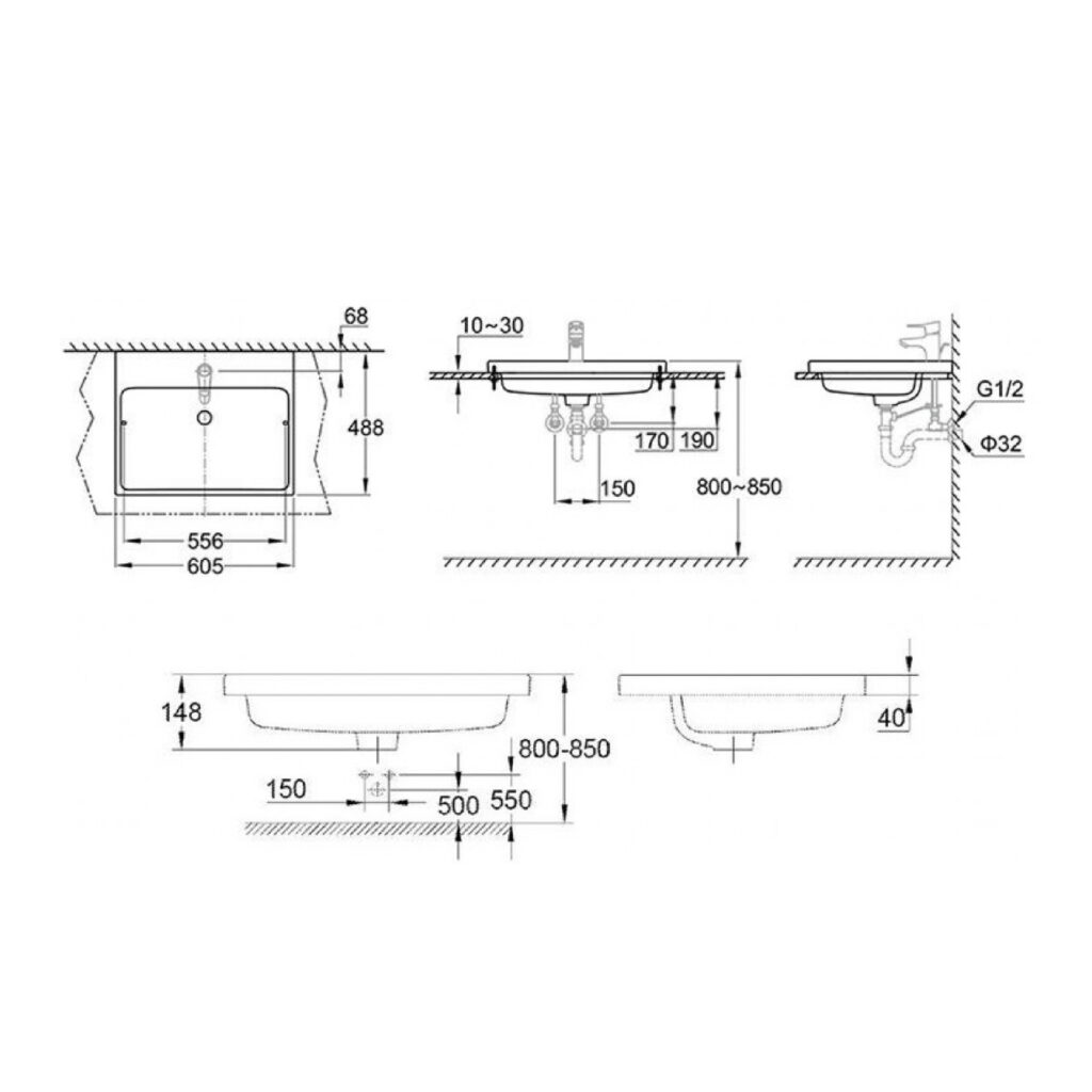 GROHE EUROCUBE CONTER BASIN BUILT-IN 60, 39311000