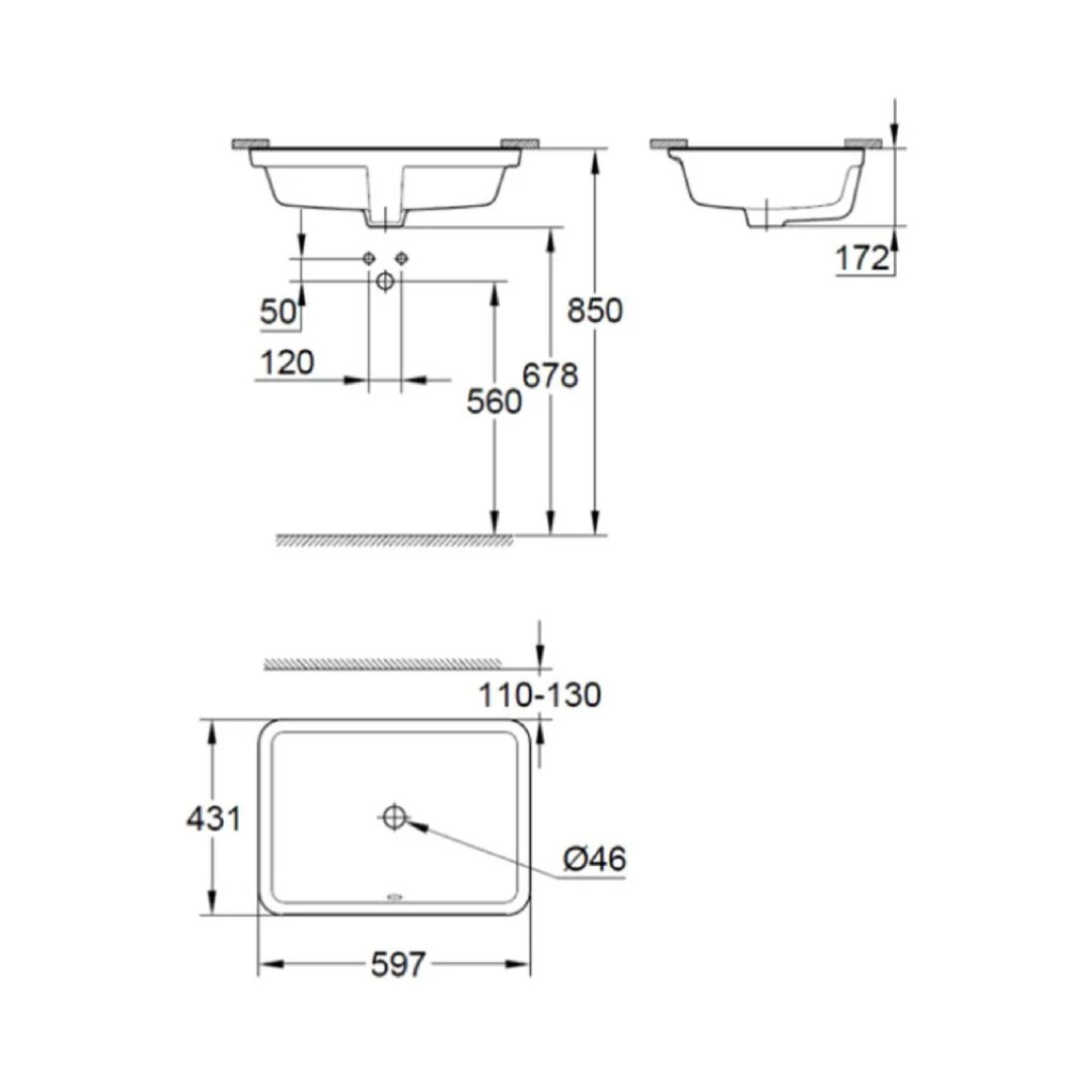 GROHE EURO CERAMIC UNDER COUNTER BASIN SQUARE 48, 101018SH00