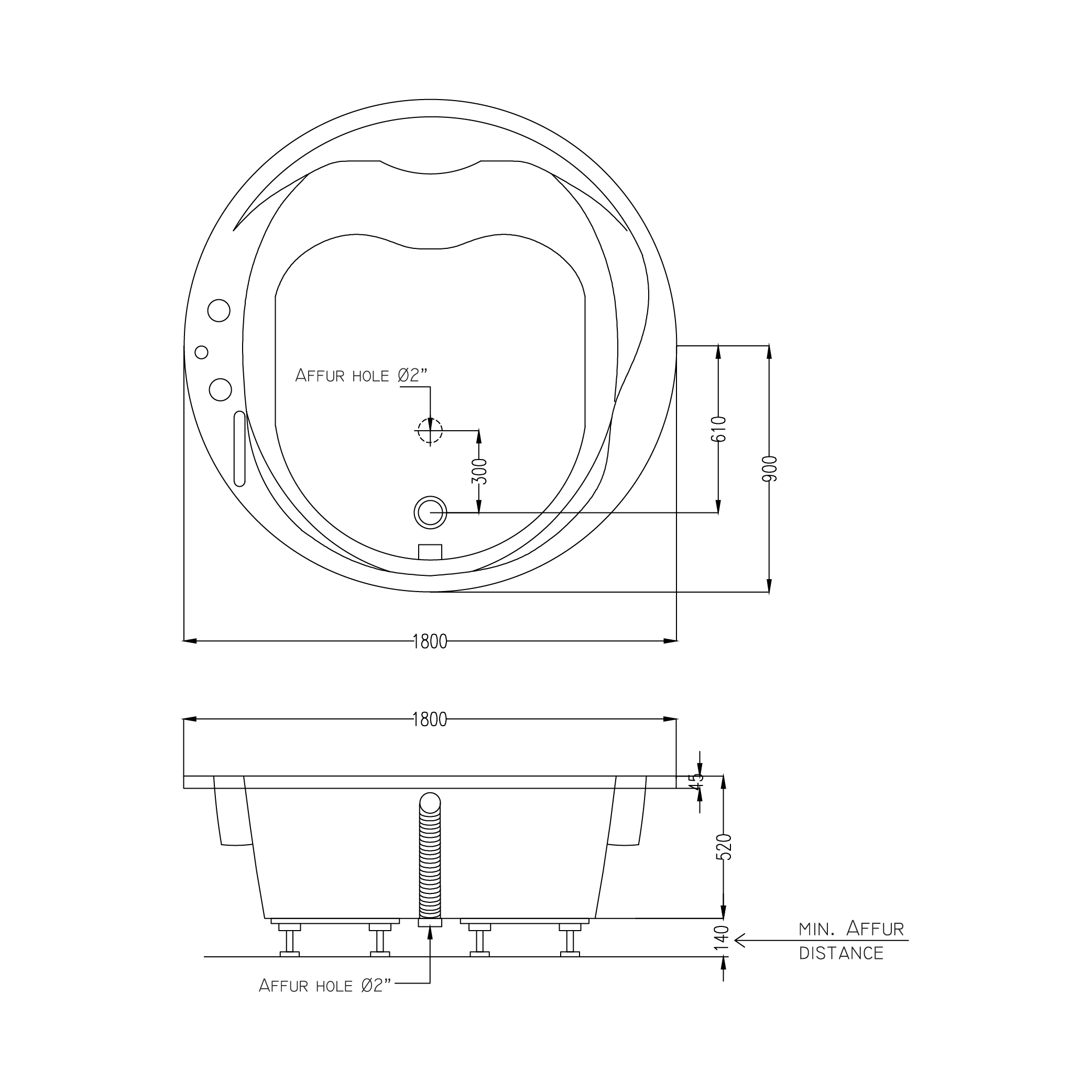 KOLPA BUILT-IN TUB d.180CM + BATH TRAP INCLUDE OVERFLOW 1M