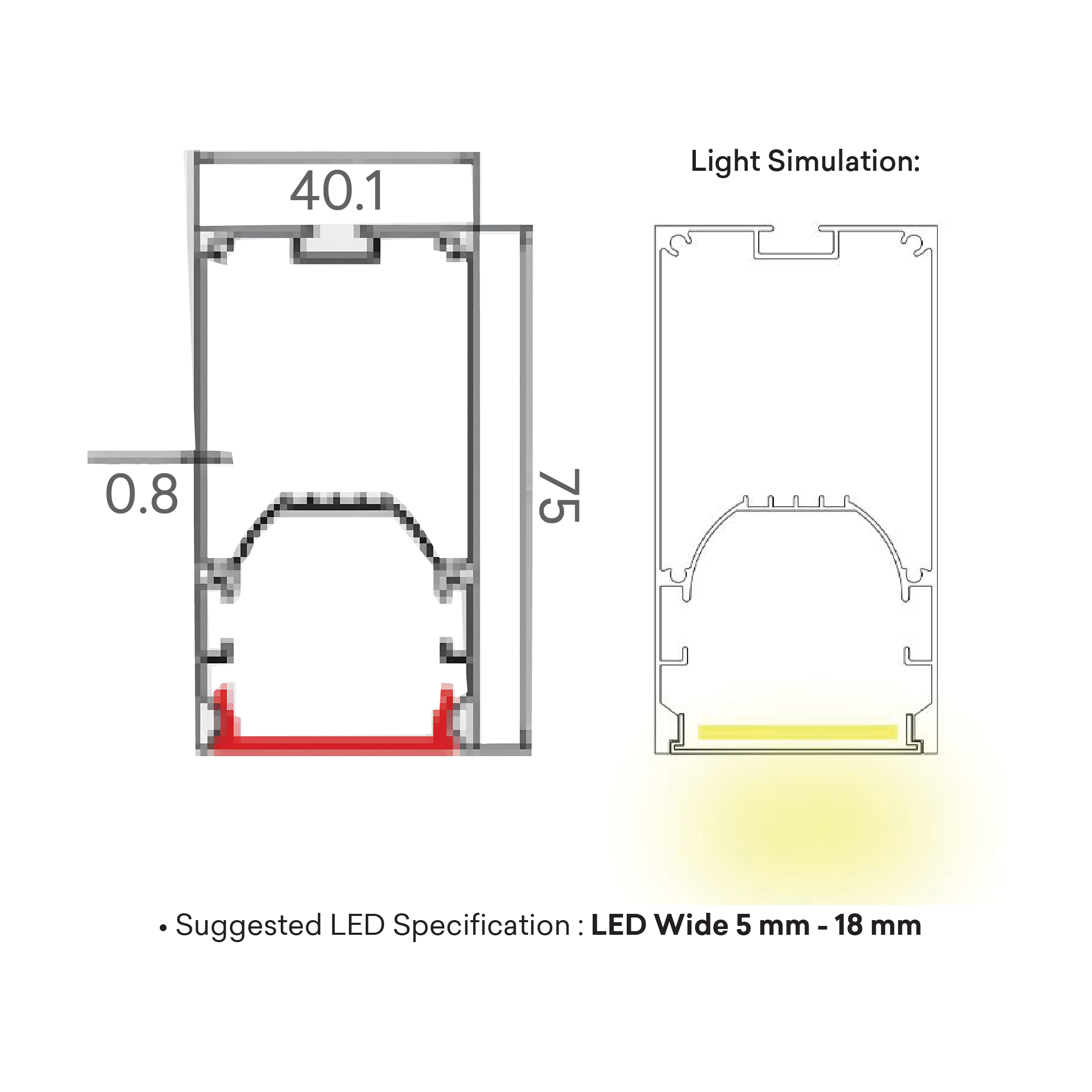 Penta Linea ALUMINIUM PROFILE 40.1X75MM ANODIZING SILVER 3M/PC
