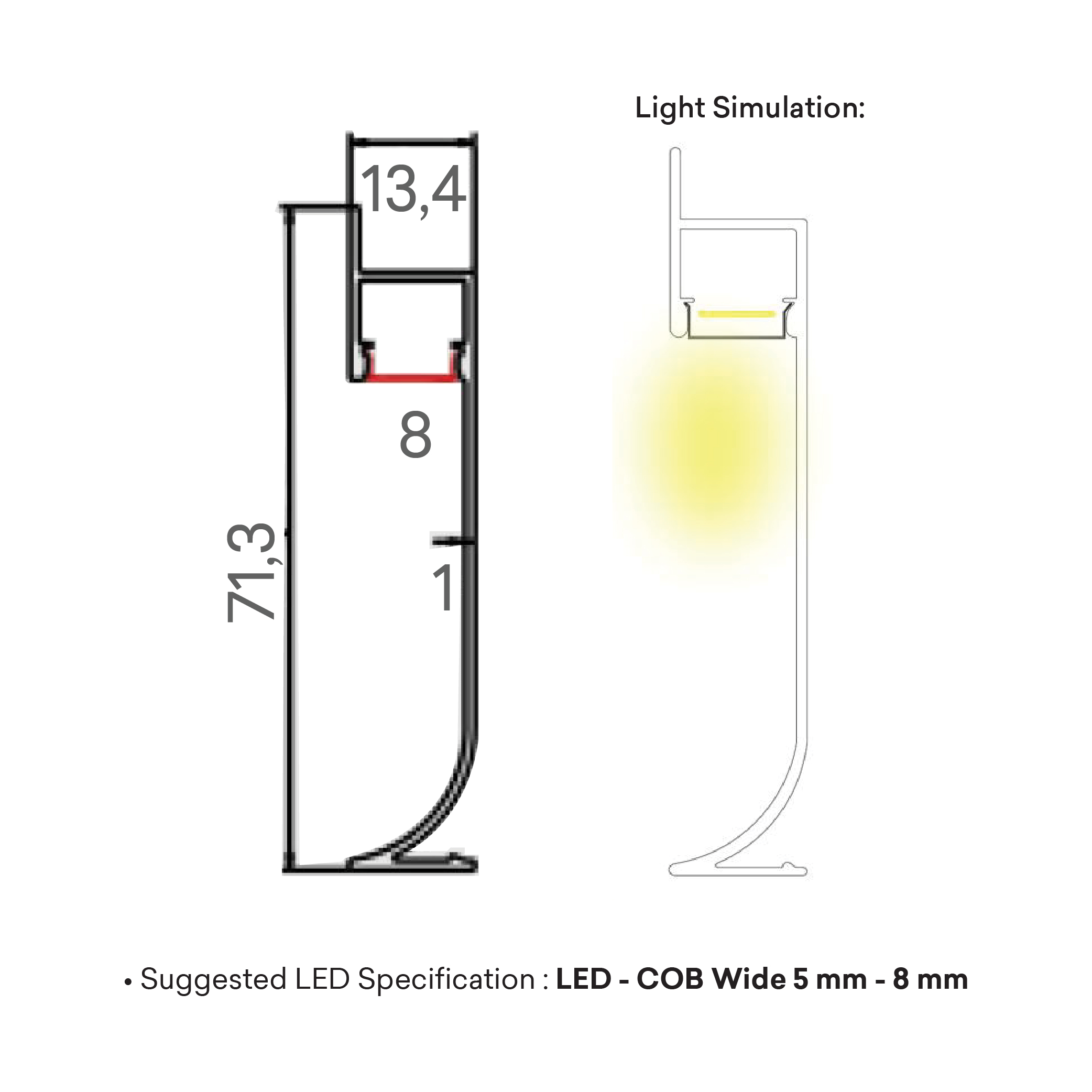 • Suitable for COB LED strip lights – Wide with a minimum width of 5mm – 8mm