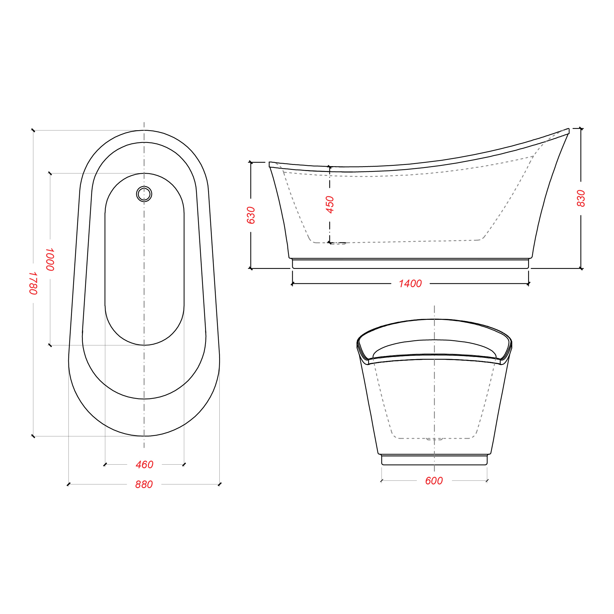 - Bathtub Size (L x W x H) 1780 x 880 x 830 mm