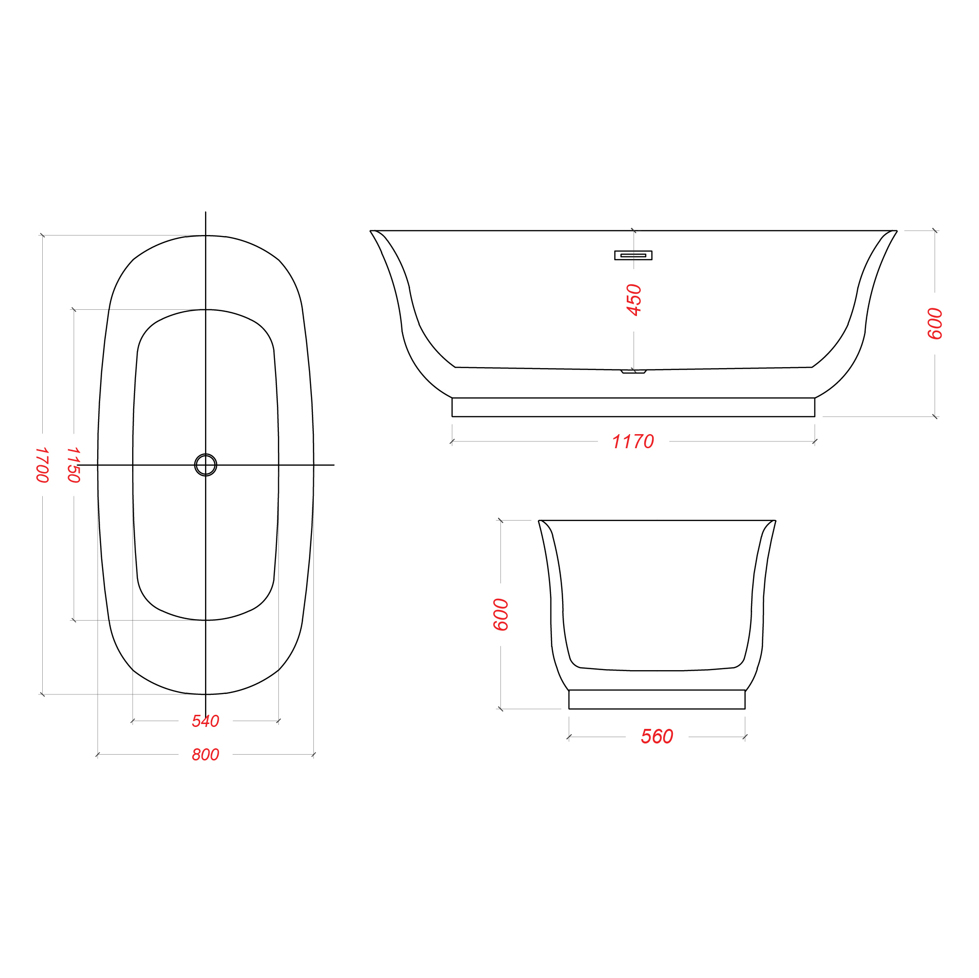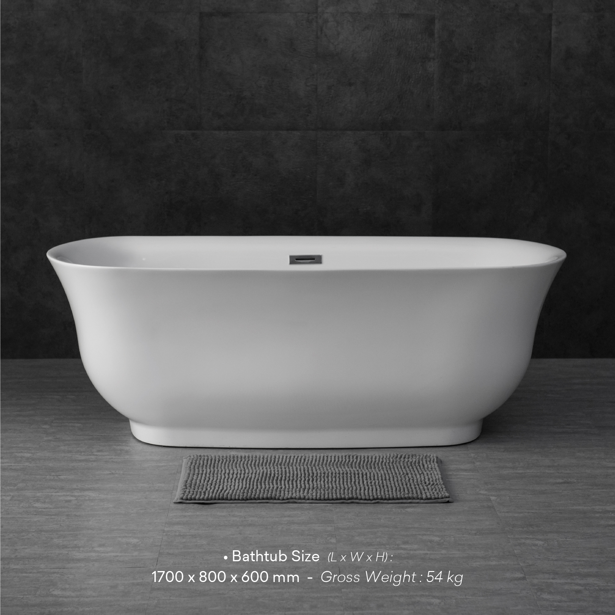 - Bathtub Size (L x W x H) 1700 x 800 x 600 mm